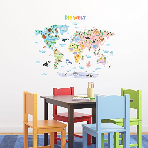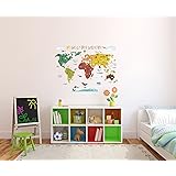 • DECOWALL Weltkarte Tierwelt Wandtattoo - Große Wanddekoration Für Kinderzimmer & Wohnzimmer