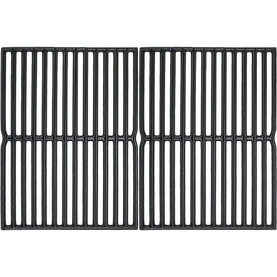 Endlich mal vernünftige Ersatz-Grillroste für die Weber Spirit 200 Serie! Aus lebensmittelechtem Gusseisen, die speichern die Hitze super und geben diese schönen Grillstreifen auf Steak & Co. Maße: 38cm lang und 28.6cm breit pro Rost. Passen für Spirit E-200 (2009-2012), E-210 (2012 und älter), S-200, S-210 (2009-2012) und noch ein paar andere Modelle. Ersetzen die originalen Weber-Teile 7521, 7522, 7523, 65904, 65905. Verziehen sich nicht wie die Billig-Teile und halten ewig. Die schmalen Abstände zwischen den Stangen sorgen dafür, dass auch kleine Snacks nicht durchfallen. Einfach die alten Roste raus, neue rein - und schon grillt sich's wie mit nem neuen Grill! Viel günstiger als Original-Ersatzteile, aber trotzdem top Qualität. Vorher am besten mal nachmessen, ob's passt, aber eigentlich sitzt das perfekt.