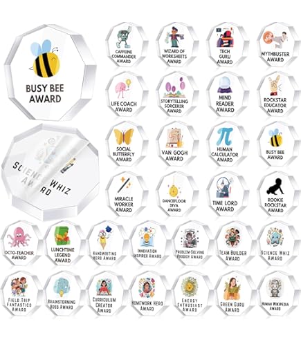 Motivation, die ins Auge fällt! Dieses Set enthält 18 Acryl-Awards in 6 verschiedenen Designs – perfekt, um Mitarbeiter, Schüler oder Kollegen zu würdigen. Mit motivierenden Aufschriften wie 'Gut gemacht' oder 'Du bist der Beste'.