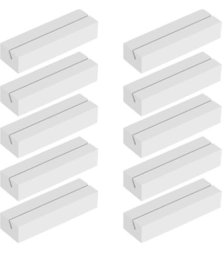 Perfekt für deine Feier! Diese weißen Kartenhalter aus Holz sind vielseitig einsetzbar. Quaderförmig, 4cm breit, 7,6cm hoch und 2cm tief - genau die richtige Größe für Tischkarten. Der schräge Schlitz oben hält die Karten sicher. Ideal für Hochzeiten, Geburtstage, Jubiläen oder Firmenevents. Ob Menükarten, Platzkarten, Buffetbeschilderung oder Namenskarten - damit wird jeder Tisch zum Hingucker. Kannst du aber auch auf dem Schreibtisch für Familienfotos oder Visitenkarten verwenden. Sieht schick aus, ist stabil und passt zu jedem Dekorationsstil. Einfach ein praktisches Accessoire, das bei keiner Feier fehlen sollte!