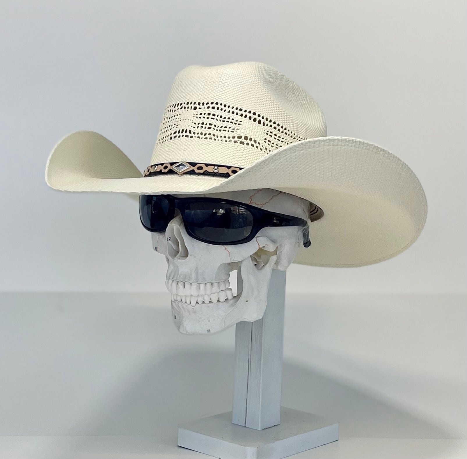 Yeehaw! Dieser weiße Cowboyhut bringt Western-Flair in deinen Look! Aus weichem Vliesstoff gefertigt, ist er leicht, bequem und perfekt für Kostümpartys, Festivals oder um deinem Alltagsoutfit einen besonderen Touch zu verleihen. Der verstellbare Kinnriemen sorgt für sicheren Halt, auch bei Wind. Die breite Krempe bietet super Sonnenschutz und das silberfarbene Band mit dekorativer Schnalle gibt dem Hut den letzten Schliff. Leicht zu reinigen und zu pflegen - einfach abwischen und er sieht aus wie neu. Ob für ein Country-Konzert, eine Western-Party oder einfach nur für den Style - mit diesem Hut machst du garantiert eine gute Figur! Hol dir den Wild West direkt in deinen Kleiderschrank!