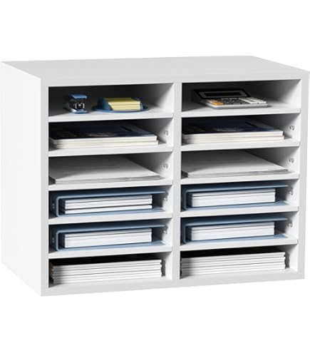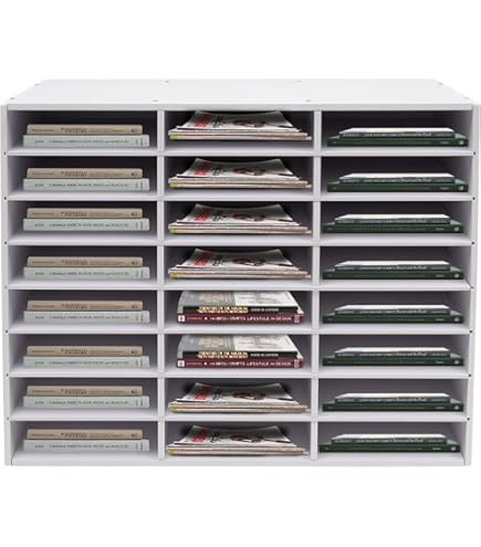 Endlich Ordnung auf dem Schreibtisch! Der Dettchan 36-Fach Literatur Organizer bringt System in deine Unterlagen. Mit den praktischen Fächern (je 23,7x6cm) hast du alle Dokumente, Bücher und Ordner immer griffbereit. Aus stabiler PVC-Platte gefertigt, trägt er bis zu 80kg - da macht auch eine schwere Fachliteratur nichts aus. Die Trennwände lassen sich entfernen, sodass du die Fächergrößen individuell anpassen kannst. Die weiße Farbe passt zu jedem Einrichtungsstil und die abgerundeten Ecken sorgen für Sicherheit. Einfach zusammenzubauen - in wenigen Minuten steht dein neuer Ordnungshelfer bereit. Perfekt fürs Homeoffice, Klassenzimmer oder Büro. Sag goodbye zum Chaos und hello zur perfekten Organisation!