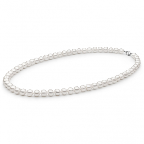 Herren Perlenkette - Weiße Süßwasserperlen 8mm In Sterling Silber