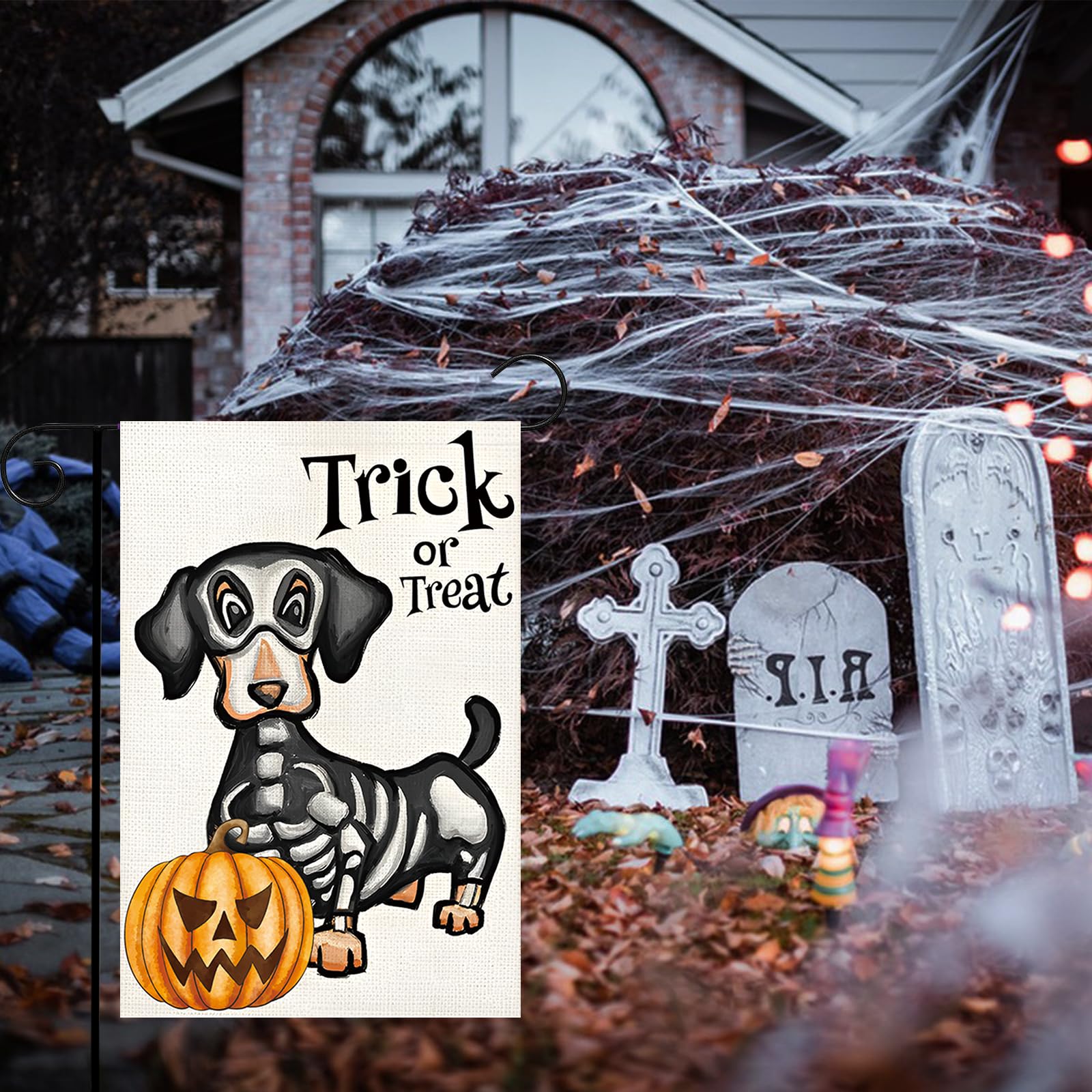 Bereit für die gruseligste Zeit des Jahres? Diese doppelseitige Halloween-Gartenflagge bringt sofort spukigen Charme in deinen Garten! Mit 38,1 x 45,7 cm Größe zeigt sie klassische Halloween-Motive wie Krähen, Kürbisse, Vogelscheuchen und den Schriftzug 'Süßes oder Saures'. Die besondere Form und lebendigen Farben machen sie zum echten Hingucker - deine Nachbarn werden neidisch sein! Aus wetterfestem Polyester hält sie Sonne, Regen und Wind stand und kann Jahr für Jahr verwendet werden. Einfach mit der oberen Hülse an jedem Standard-Gartenflaggenständer befestigen (Ständer nicht im Lieferumfang). Perfekt für Garten, Veranda, Hof oder Halloween-Partys. Mach dein Zuhause zur gruseligsten Adresse der Nachbarschaft! Auch ein super Geschenk für Halloween-Fans - bring sofort festliche Stimmung für die Trick-or-Treat-Saison!