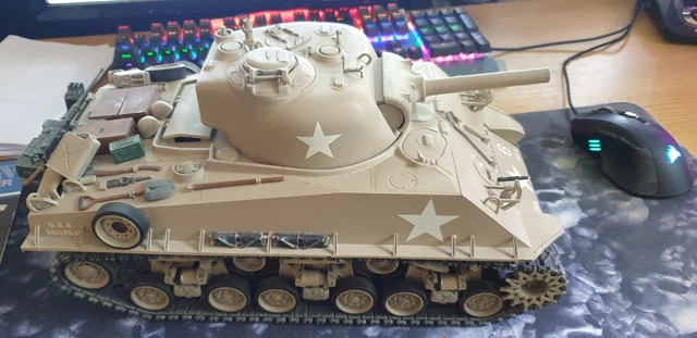 Ein absolutes Highlight für RC-Fans! Dieser Tamiya Sherman M4 Panzer im Maßstab 1:16 ist voll ausgestattet mit allen Features, die das Herz begehrt. Zwei Elektromotoren Typ 380 ermöglichen sogar Drehungen auf der Stelle! Der Turm dreht sich, das Kanonenrohr hebt und senkt sich. Das Soundmodul erzeugt authentische Geräusche - Motorstart, Fahrgeräusche, Turmdrehen und sogar Kanonenabschuss mit Mündungsfeuer-LED und Rückstoß-Effekt! Maße: 376mm Länge, 183mm Breite, 205mm Höhe. Inklusive DMD-Kontrolleinheit T-05 und Multifunktionsmodul MF-02. Mit Kommandeursfigur für noch mehr Realismus. Achtung: Nicht für Kinder unter 14 Jahren geeignet. Du brauchst noch ein 2-Kanal-Fernsteuersystem und Akkus. Ein faszinierendes Modellbau-Projekt für anspruchsvolle RC-Enthusiasten!