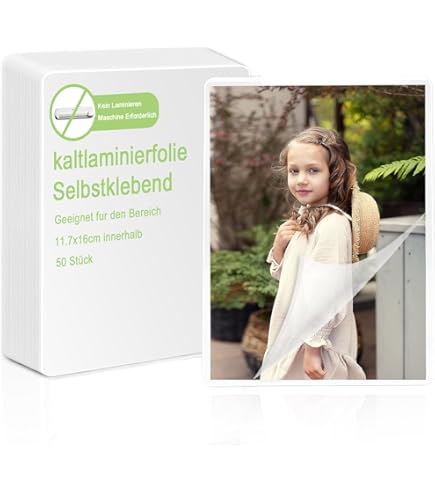 Einfach laminieren ohne teure Maschine! Diese 50 Kaltlaminierfolien in A6 (10,4x15,4cm) sind selbstklebend und super einfach zu verwenden. Aus mattem PVC für edlen Look und optimalen Schutz vor Kratzern und Feuchtigkeit. Transparent, damit deine Dokumente und Fotos perfekt zur Geltung kommen. Inklusive Schaber für blasenfreies Ergebnis. Perfekt für Visitenkarten, Fotos, Ultraschallbilder oder wichtige Dokumente. Einfach abziehen, aufkleben, glattstreichen - fertig!