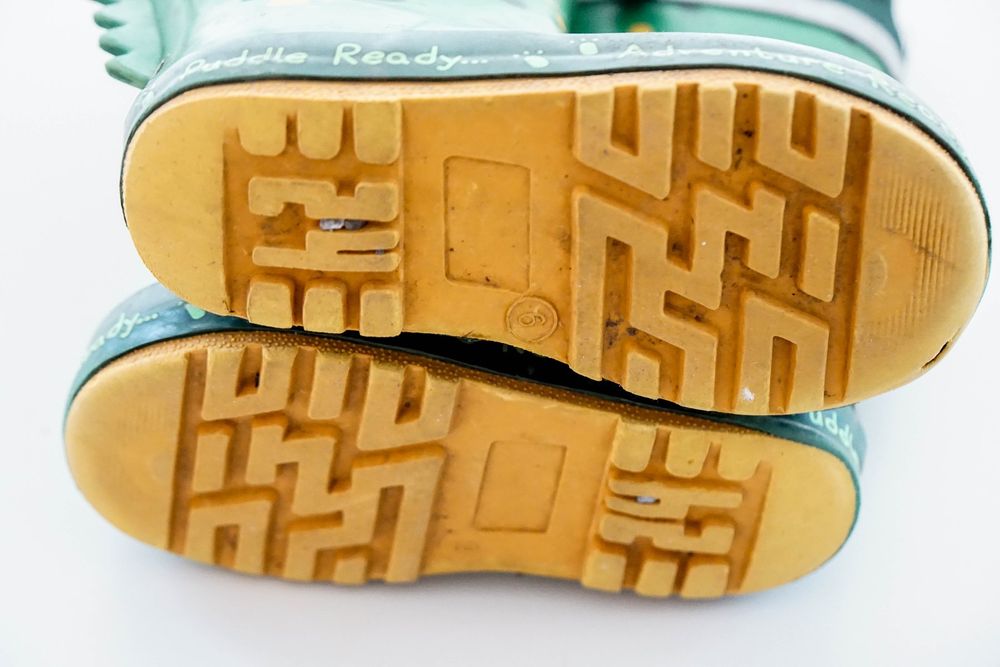 Regen macht mit diesen Peppa Wutz Stiefeln richtig Spaß! Die hellblauen Gummistiefel zeigen George mit seinem Lieblingsdino und begeistern kleine Peppa Wutz-Fans. Vollständig wasserdicht halten die Stiefel kleine Füße auch in den größten Pfützen trocken. Das praktische Zugband oben schützt zusätzlich vor Spritzwasser. Die rutschfeste Profilsohle gibt sicheren Halt auf nassen Untergründen. Einfach mit feuchtem Tuch abwischbar - ideal für Kita, Spielplatz und Waldspaziergänge. In den Größen 23-32 erhältlich. Der perfekte Begleiter für regnerische Abenteuer!