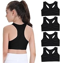 Total praktisch dieses 4-teilige Sport BH Set für Mädchen von 8-14 Jahren! Aus weicher Baumwolle mit Elasthan - super atmungsaktiv, dehnbar und hautfreundlich. Ohne Bügel und nicht gepolstert, also perfekt für Mädchen in der Wachstumsphase. Das doppellagige Design gibt genug Halt, ohne einzuengen. Mit erhöhter Elastizität am Bund, damit nichts hochrollt. Die breiten Träger verteilen den Druck super auf den Schultern - keine roten Flecken mehr! Perfekt für Sport, Schule, Tanzunterricht oder einfach für den Alltag. Einfach unter der Kleidung tragen - merkt kaum jemand. Im Set: 3 schwarze und 1 weiße BH. Maße: Höhe 27cm, Unterbrustweite 31cm (dehnbar auf 39cm), passt für Brustumfang 62-80cm. Einfach waschen und tragen - deine Tochter wird's lieben!
