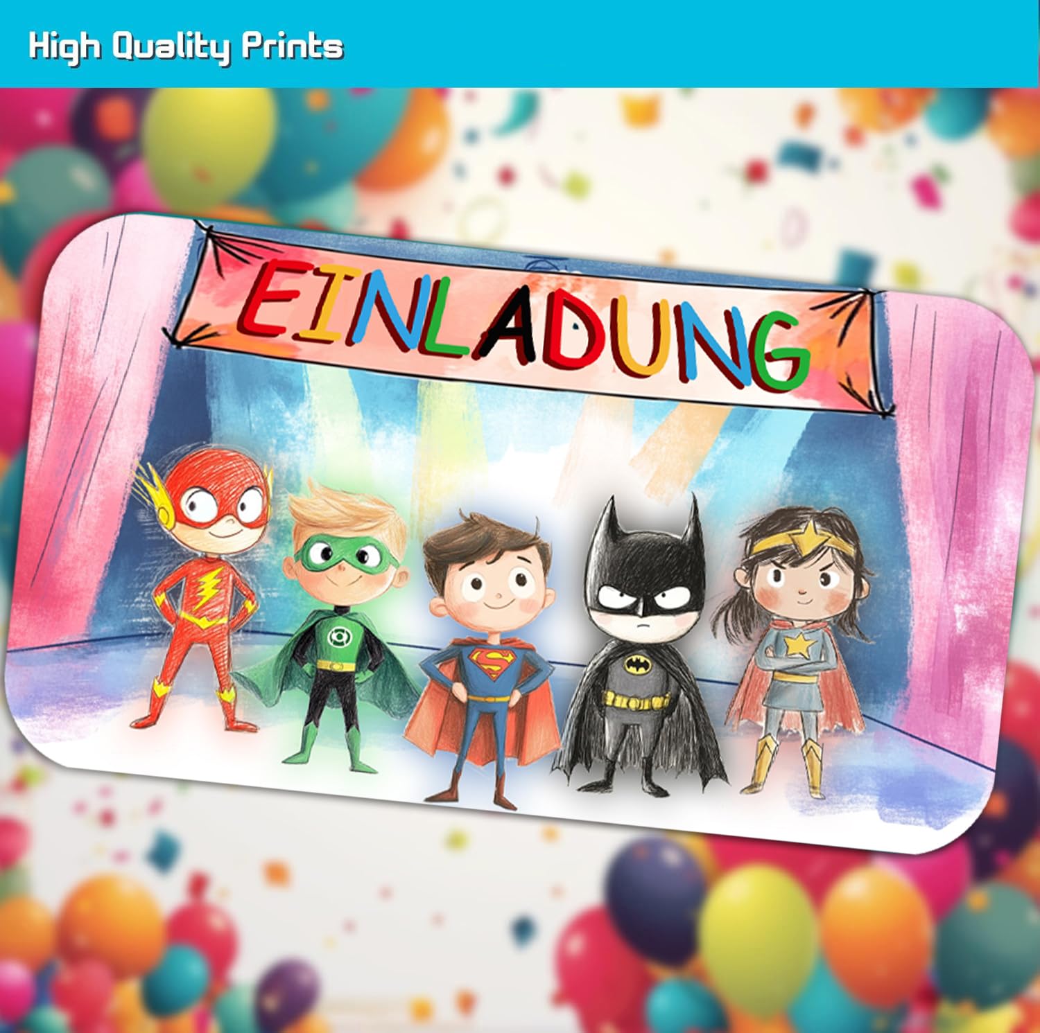 Planst du einen super Kindergeburtstag? 🦸♂️ Diese Einladungskarten mit Superhelden-Motiven sind der perfekte Start für eine actionreiche Party!