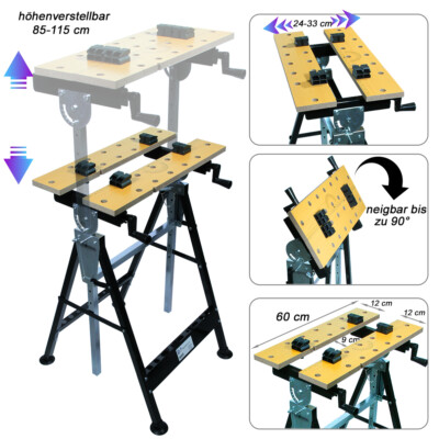 • DEDRA Werkbank Klappbar - 100kg Tragkraft Mit Spannbacken & Skala