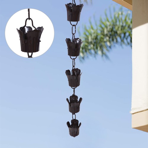 Diese Regenkette verwandelt langweilige Fallrohre in ein dekoratives Highlight für deinen Garten! Aus Metall in hellem Kupferton gefertigt, leitet sie das Regenwasser sanft vom Dach in den Boden. Mit 1 Meter Länge perfekt für einstöckige Häuser, Schuppen oder Pavillons. Das Glocken-Design sieht nicht nur schön aus, sondern erzeugt auch ein beruhigendes Plätschern bei Regen. Einfach mit dem integrierten Haken an der Dachrinne befestigen - kein Werkzeug nötig! Das Metall ist witterungsbeständig und hält auch stärkerem Regen stand. Neben der praktischen Funktion als Wasserableitung ist die Kette ein echter Hingucker im Garten. Ob an der Terrasse, am Carport oder am Gartenhaus - diese Regenkette macht aus nützlichem Regenwasserabfluss ein dekoratives Element. Einfach aufhängen und dem Regen lauschen!