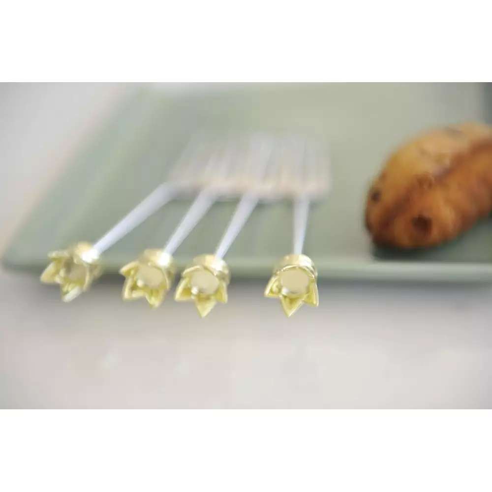 Verwöhne deine Gäste mit diesem eleganten Kuchengabel-Set von Greengate! Die 4 goldenen Gabeln aus hochwertigem Edelstahl verleihen jedem Kuchen, Dessert oder Pasteten einen Hauch von Luxus. Das glänzende Design macht jede Tafeldekoration zum besonderen Hingucker - ob bei festlichen Anlässen, Geburtstagen oder einfach für den alltäglichen Genuss. Die hochwertige Verarbeitung garantiert Langlebigkeit und ein angenehmes Handgefühl. Perfekt für Feinschmecker und alle, die ihre Tischkultur auf das nächste Level heben möchten. Ein ideales Geschenk für Hochzeiten, Jubiläen oder einfach als besondere Aufmerksamkeit für dich selbst. Mit diesen Gabeln wird jedes Dessert zu einem unvergesslichen Erlebnis. Einfach auspacken, auf den Tisch legen und staunen, wie sie deine Tischdekoration transformieren!