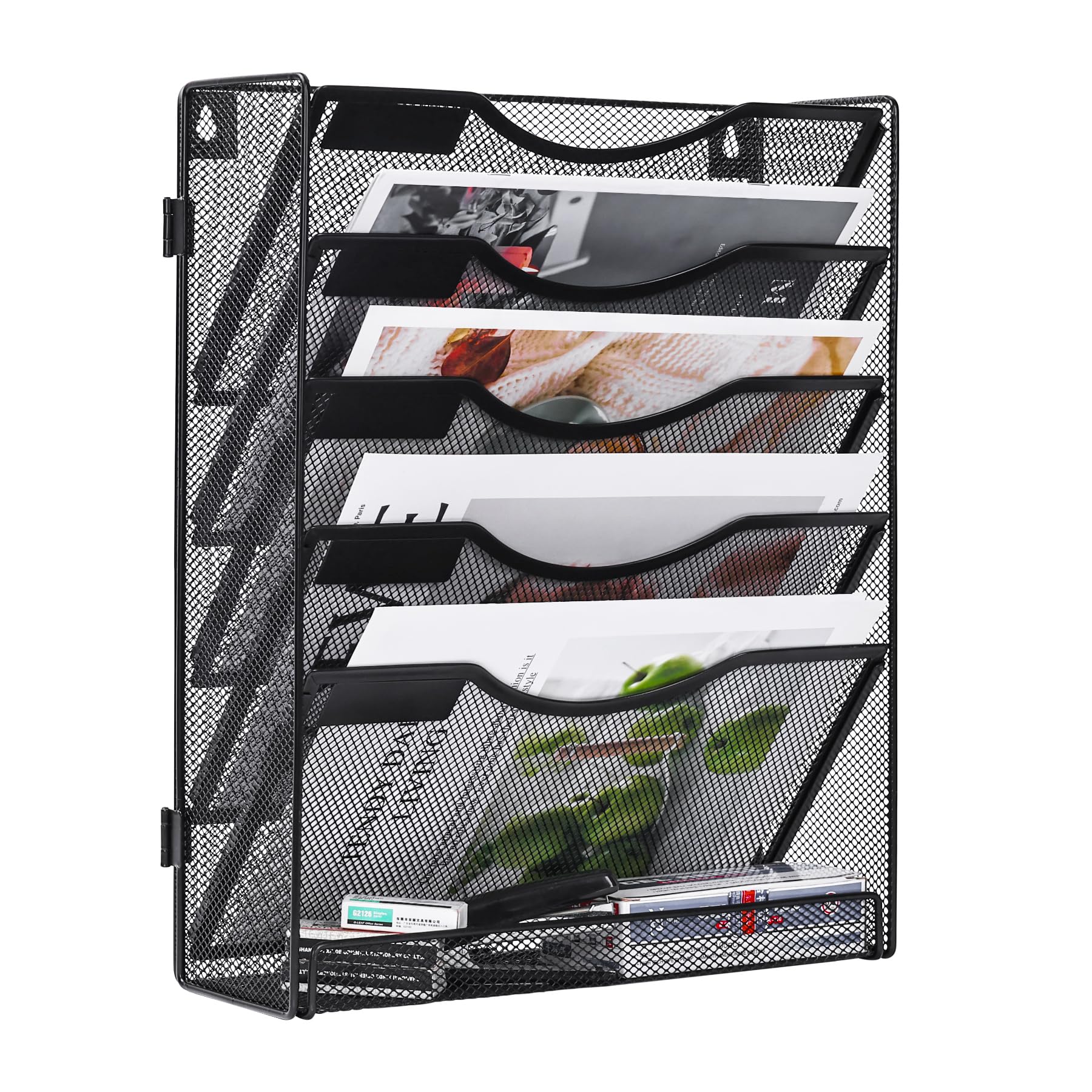 Bring Ordnung auf deinen Schreibtisch mit diesem praktischen 6-fach Organizer! Aus robustem Stahl gefertigt, bietet er Platz für A4-Unterlagen, Zeitschriften, Notizbücher, Rechnungen und vieles mehr. Mit den Maßen 32,5 x 10,5 x 40,5 cm findest du hier genug Stauraum für all deine wichtigen Dokumente. Das Besondere: Du kannst den Organizer entweder an der Wand montieren (platzsparend!) oder einfach auf den Schreibtisch stellen - je nachdem, was dir besser gefällt. Die polierten Kanten sind glatt und kratzen nicht, die flexiblen Fächer halten deine Unterlagen sicher. Perfekt fürs Büro, Homeoffice, Kinderzimmer für Schulbücher oder sogar für die Küche für Kochbücher und Rezepte. Nie wieder suchen - alles ist griffbereit und übersichtlich sortiert! Die schwarze Farbe sieht zudem modern und dezent aus und passt zu fast jedem Einrichtungsstil. Endlich mehr Platz auf dem Schreibtisch und kein Papierchaos mehr! Einfach montieren und sofort mehr Ordnung im Alltag genießen.