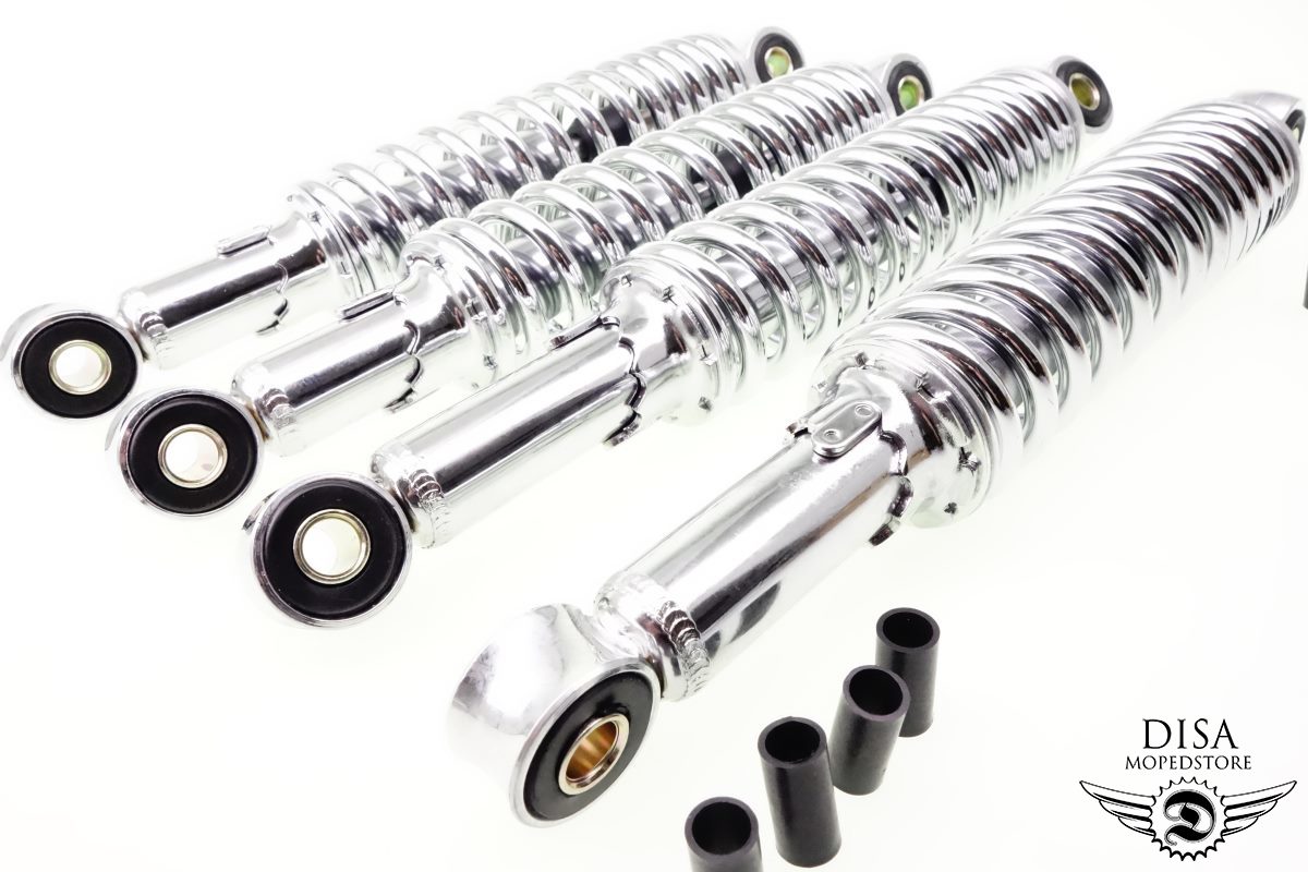 Perfektes Upgrade für deine Simson, Hercules oder Puch! Diese verchromten Stoßdämpfer sehen nicht nur gut aus, sondern machen jede Fahrt deutlich komfortabler. Mit 280mm Einbaulänge und hydraulischer Dämpfung gleitest du selbst über holprige Straßen.