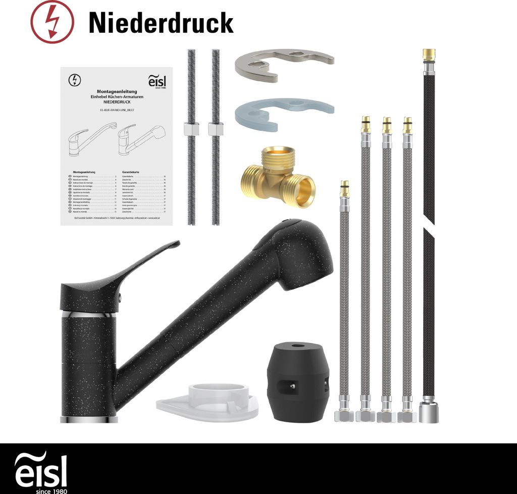 Diese grüne Granit-Armatur bringt Farbe in deine Küche! Als Niederdruck-Armatur perfekt für Anschluss an Warmwasserspeicher oder Boiler. Aus massivem Messing mit Spezial-Lackierung - rostfrei und langlebig. Der Einhebelmischer ist super leichtgängig, mit keramischer Kartusche für perfekte Funktion. Der schwenkbare Auslauf (23cm Ausladung) macht das Arbeiten an der Spüle einfach praktisch. Mit wassersparender Mischdüse und einfacher Montage (passt in 35mm Bohrung). Lieferung inklusive 3 flexiblen Anschlussschläuchen und komplettem Befestigungsmaterial. Achtung: Nur für Niederdruck geeignet - perfekt wenn du einen Untertisch-Boiler hast. Stilvoll, funktional und farbenfroh - damit wird Spülen zum Vergnügen!
