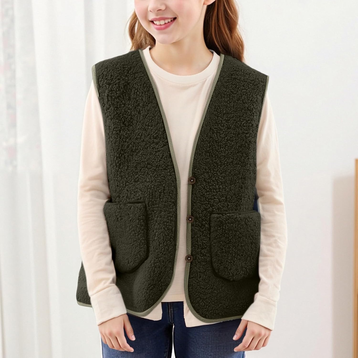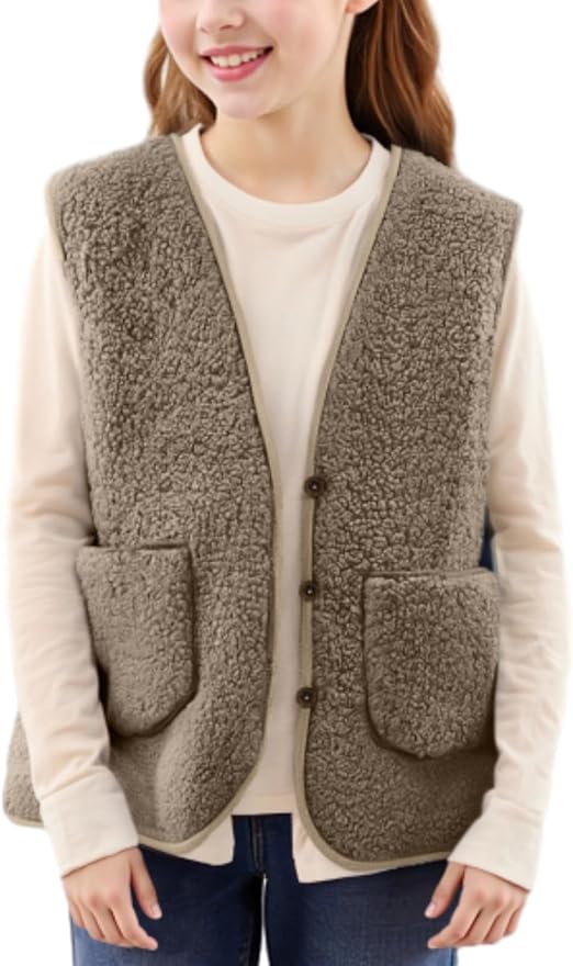 Sooo weich! Diese Teddyfleece-Weste für Kinder fühlt sich an wie eine Umarmung - super kuschelig und super schonend für zarte Kinderhaut. Perfekt für kalte Tage! Der V-Ausschnitt sieht nicht nur stylisch aus, sondern sorgt auch für eine bequeme Passform. Ob für den Kindergarten, Spielplatz oder gemütliche Tage zu Hause - diese Weste ist dein Allrounder für Herbst und Winter. Und das Beste: Sie ist innen extra flauschig und außen winddicht! Einfach ein Langarmshirt drunter ziehen und schon ist dein Kind perfekt gegen kühle Temperaturen gewappnet. Ideal für Outdoor-Aktivitäten wie Radfahren, Wandern oder Camping, aber auch einfach nur zum Rumtoben. Wichtig: Vergiss die Amazon-Größentabelle - wir haben unsere eigenen Maße, also schau unbedingt in unsere Größentabelle in der Beschreibung! Material: 100% Polyester-Fleece. Verfügbar in Größen 92-152.