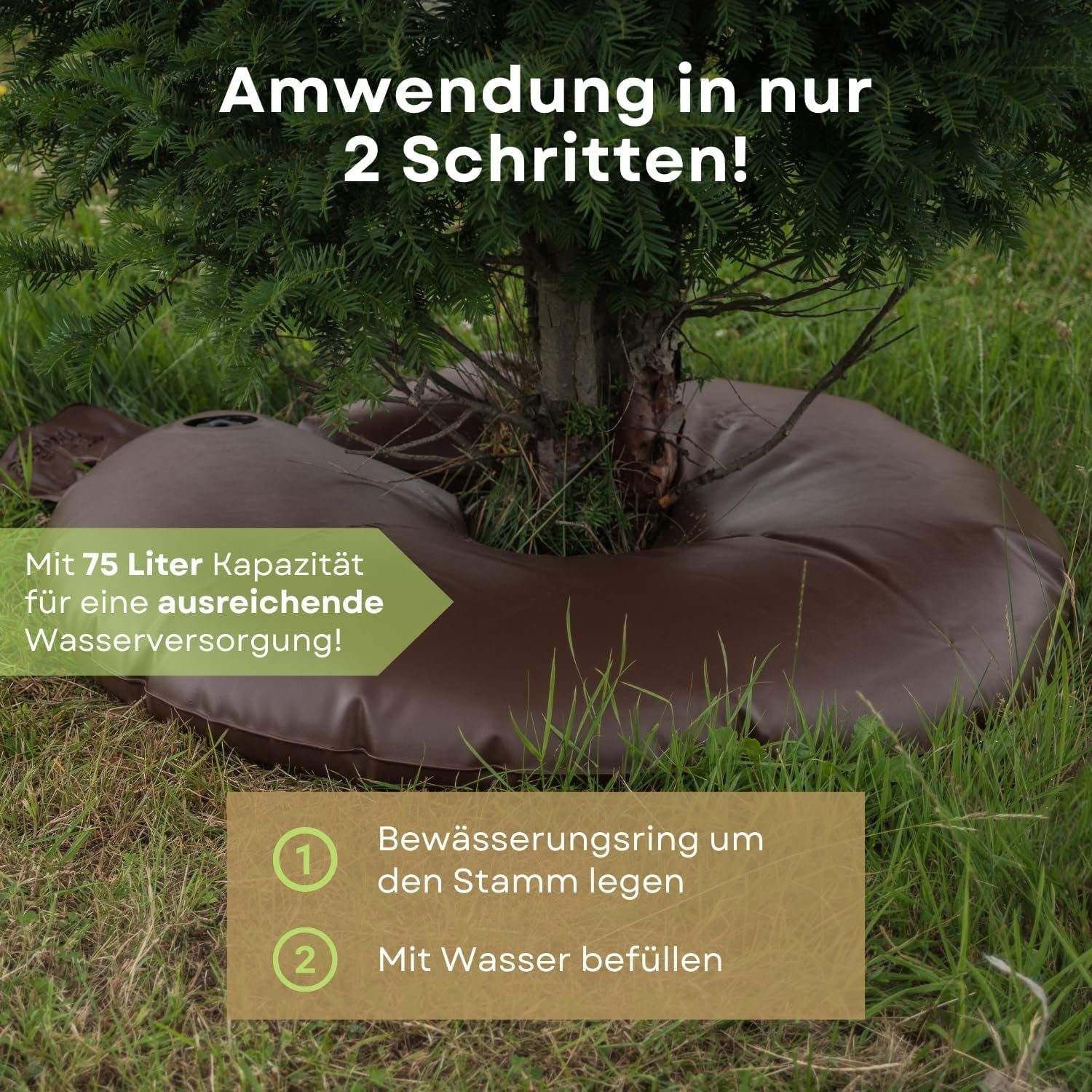 Geniale Bewässerungshilfe für deine Bäume! Dieser 120cm Wassersack gibt Wasser langsam über 6-9 Stunden ab - perfekt für tiefe Wurzelbewässerung. Ideal für neu gepflanzte Bäume und heiße Sommer.\n\nAus robustem, witterungsbeständigem PVC-Material das reißfest und langlebig ist. Einfache Befüllung durch großen Schraubverschluss (passt für die meisten Gartenschläuche).\n\nSlow-Release Tropfer sorgt für gleichmäßige Wasserverteilung ohne Verstopfungen. Spart bis zu 70% Wasser im Vergleich zur herkömmlichen Bewässerung!\n\nAuch für Flüssigdünger geeignet. Perfekt für Obstbäume, Sträucher und alle Gartenpflanzen. Macht die Baumpflege einfacher und kostengünstiger. Einfach um den Baum legen, befüllen und den Wassersack die Arbeit machen lassen!