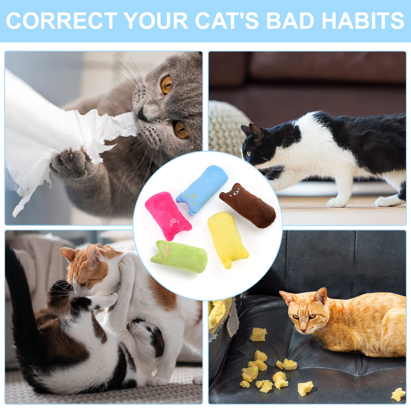 Deine Katze langweilt sich? Mit diesem super süßen Katzen-Spielzeug-Set hast du garantiert einen glücklichen Stubentiger! Das Set enthält 8 verschiedene Plüschmäuse in verschiedenen Farben - von Beige über Rosa bis Blau. Jede Maus ist mit Katzenminze gefüllt, die deine Katze absolut verrückt macht! Das Material ist super weich und atmungsaktiv, sodass der Katzenminz-Duft gut entweichen kann. Und keine Sorge - die Mäuse sind richtig beißfest und halten auch wilden Spielattacken stand. Mit 10,5 cm Länge sind sie perfekt für Katzen aller Größen. Deine Katze kann sie jagen, durch die Wohnung werfen, damit kuscheln - der Spaß ist garantiert! Das realistische Mäuse-Design weckt den Jagdinstinkt und sorgt für stundenlange Unterhaltung. Super praktisch: Du hast gleich 8 Mäuse, also musst du nicht ständig suchen, wenn mal eine unter dem Sofa verschwindet. Perfekt für junge Kätzchen und erwachsene Katzen gleichermaßen. Mach deiner Katze eine Freude und bestell dieses tolles Spielzeug-Set!