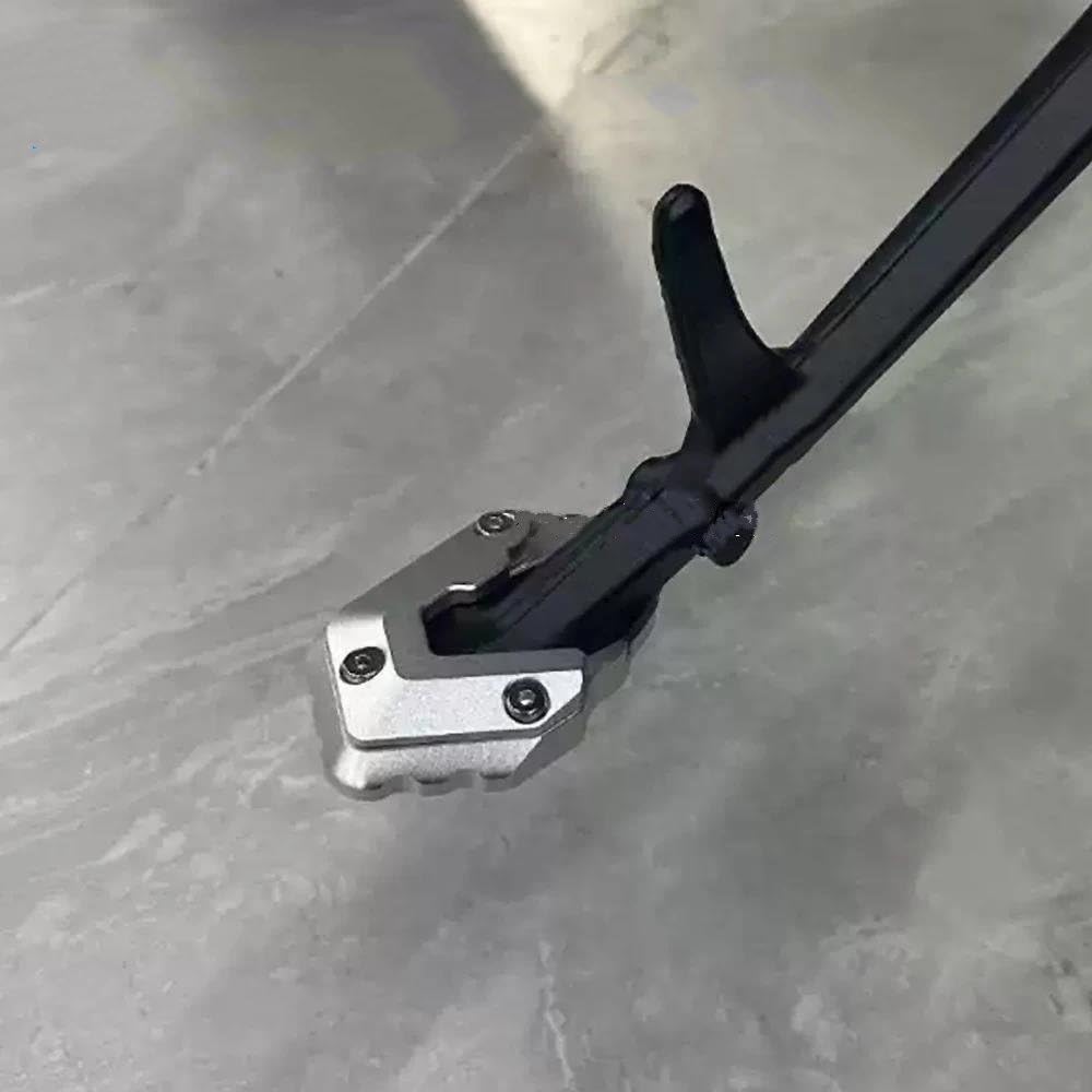 BMW R1300GS Fahrer aufgepasst! Dieser Seitenständer-Verbreiterung macht das Abstellen deiner Maschine so viel sicherer - besonders auf weichem oder unebenem Untergrund. Aus hochwertiger CNC-Aluminiumlegierung gefertigt, ist sie extrem stabil und langlebig. Die vergrößerte Auflagefläche gibt deinem Bike einen festen Stand - kein Wackeln mehr! Die strukturierte Unterseite erhöht die Reibung, sodass der Ständer nicht wegrutscht. Montage ist super einfach - kein Bohren, Schneiden oder andere Modifikationen nötig. Einfach draufsetzen und festmachen. Leicht und dennoch robust - perfekt für deine Adventure-Touren, wo der Untergrund nicht immer ideal ist. Gib deiner R1300GS diesen praktischen Upgrade für mehr Sicherheit beim Parken!