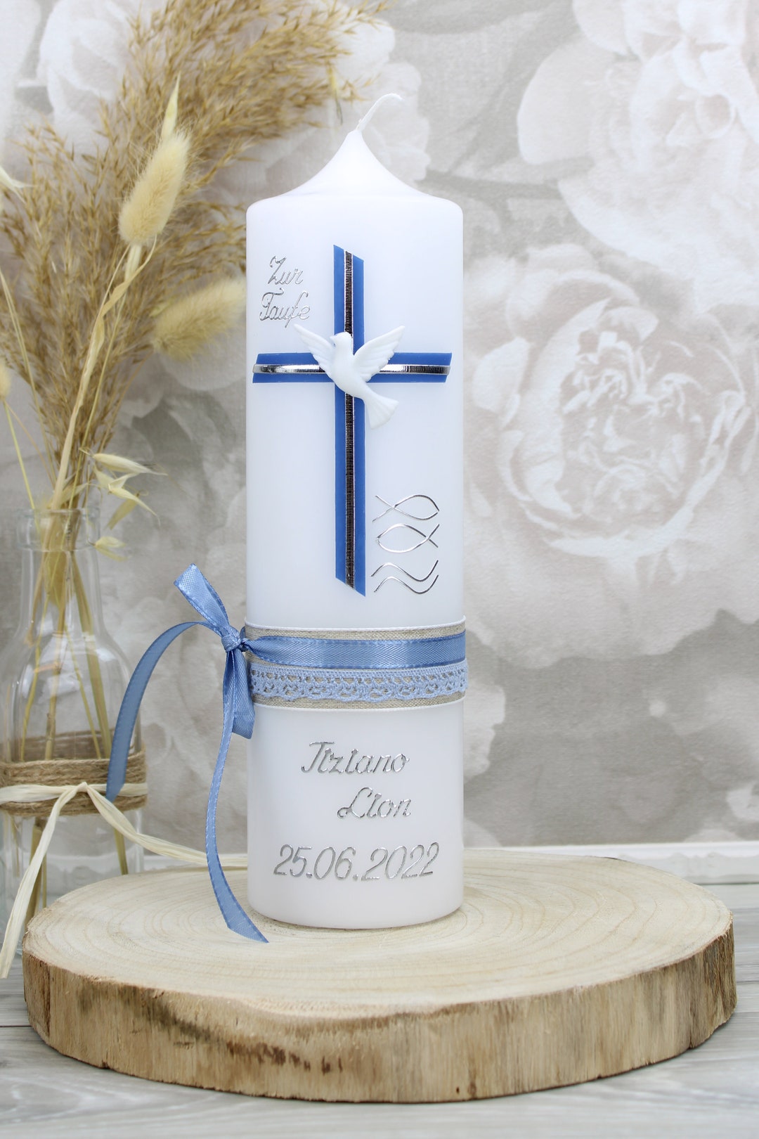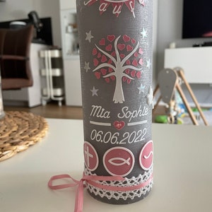 Hergestellt aus hochwertigen Wachsen nach RAL-Standard mit feinen Verzierungen. Die Kerze begleitet das Kind ein Leben lang - nicht nur zur Taufe, sondern auch später zur Kommunion, Konfirmation oder jedes Jahr am Geburtstag.