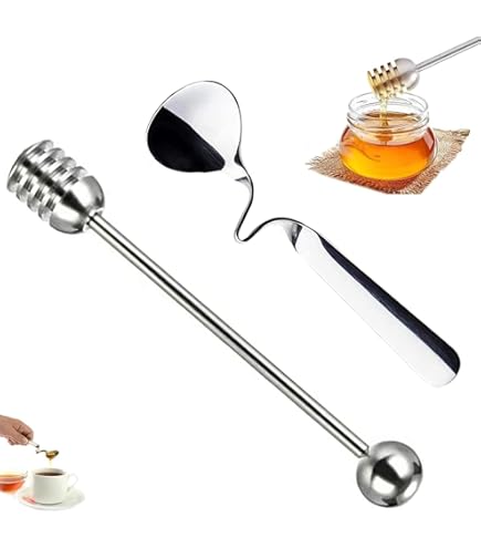 Perfekt für alle Honig-Liebhaber! Dieses 4er Set Honiglöffel macht das Honigschlecken zum Erlebnis. Aus hochwertigem Edelstahl - rostfrei, geschmacksneutral und super leicht zu reinigen. Die geniale Spirale dreht sich beim Rühren und nimmt genau die richtige Menge Honig mit. Maße: 20,3cm lang - ideal für Honigtöpfe und Gläser. Nicht nur für Honig super, sondern auch für Sirup, Ahornsirup, Marmelade oder flüssigen Zucker. Die Löffel sind schön stabil und liegen gut in der Hand. Perfekt als Geschenk für Imker, Bäcker oder einfach für dich selbst. Super für die eigene Honigproduktion, Hochzeiten oder Partys. Einfach in den Honig tauchen, drehen und genießen! Macht jedes Frühstück zum besonderen Moment.