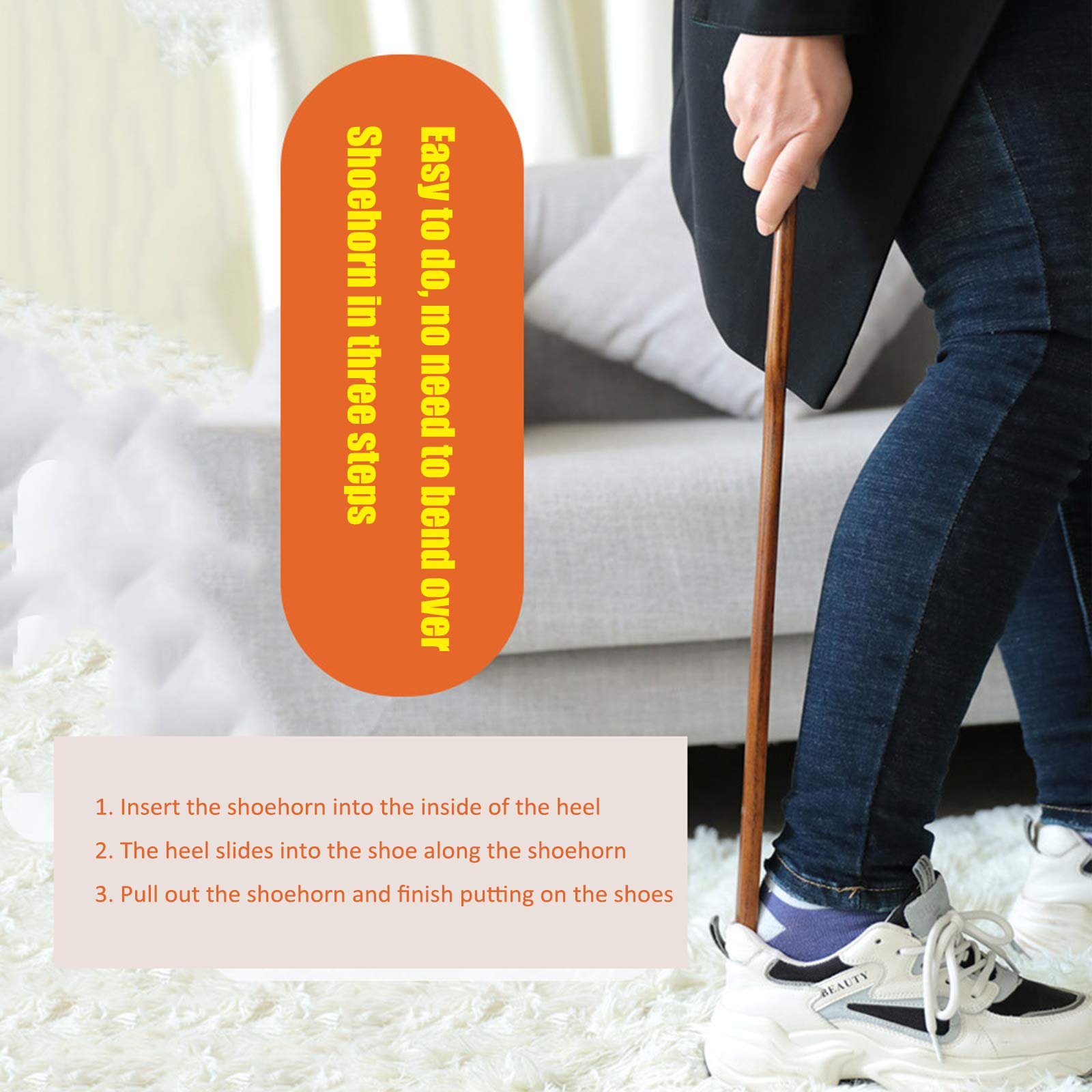 • COSMEVIVI Schuhlöffel Mit Langem Griff 55cm - Holz Schuhanzieher Für Senioren