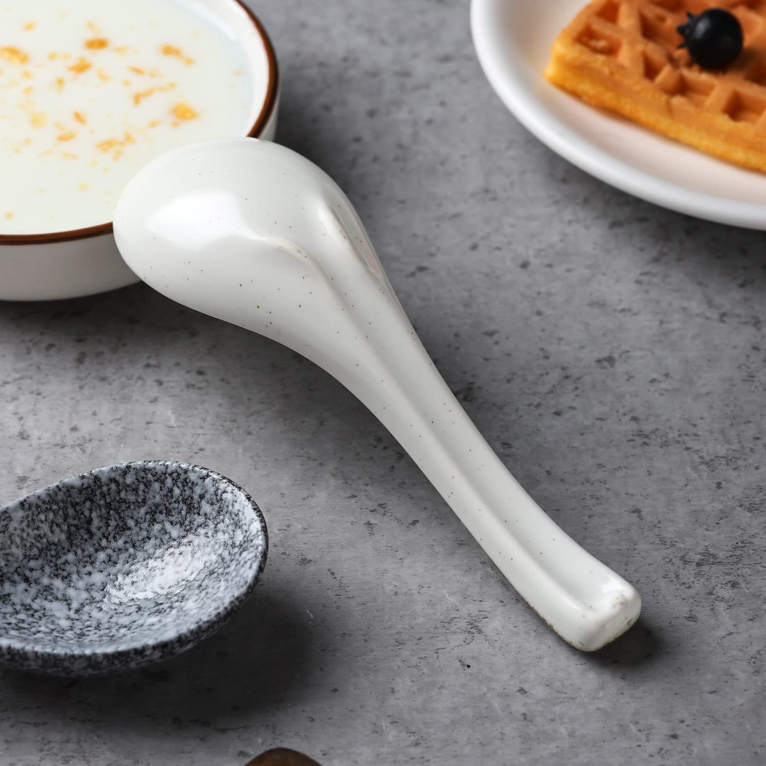 Für alle Ramen- und Suppen-Fans: Dieses 5-teilige Keramik-Löffel-Set ist ein absolutes Must-Have! Die typischen asiatischen Suppenlöffel mit ihrem flachen Design sind perfekt, um auch die letzte Brühe aus der Schüssel zu kriegen. Aus hochwertiger Keramik gefertigt, spülmaschinen- und mikrowellengeeignet - also super praktisch für den Alltag. Die beige Farbe ist dezent und passt zu fast jedem Geschirr. Die Löffel liegen gut in der Hand, der stromlinienförmige Griff ist richtig bequem. Durch den Hochtemperaturbrand sind sie robust und lebensmittelecht - keine Sorge mit schädlichen Stoffen! Perfekt nicht nur für Ramen, sondern auch für jede andere Suppe, Brei oder Eintopf. Sieht total stylisch aus - wie aus nem richtigen japanischen Restaurant! Ob für dich alleine oder wenn Gäste kommen - mit 5 Löffeln bist du bestens ausgestattet. Einfach auspacken, ab in die Spülmaschine (oder per Hand waschen) und schon kannst du deine asiatischen Kochkünste genießen! Macht jedes Gericht gleich noch authentischer!