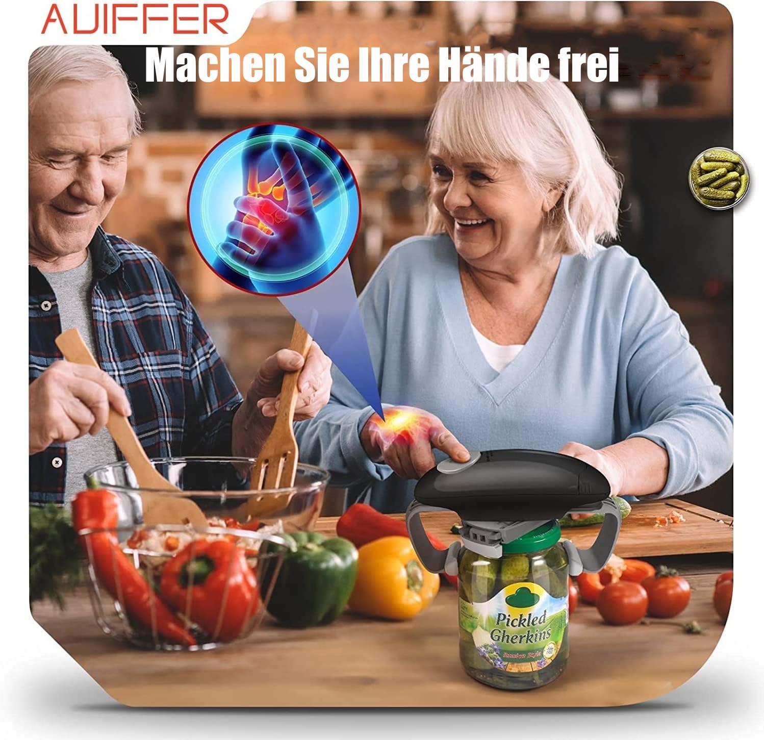 Dosen öffnen war noch nie so einfach! Dieser elektrische Dosenöffner macht Schluss mit mühsamem Gedrücke und Gefummel. Einfach Dose reinstellen, Knopf drücken - und schon öffnet sich die Dose wie von Zauberhand. Perfekt für Senioren, Menschen mit Arthritis oder schwacher Handkraft. Batteriebetrieben (2x AA) - super flexibel in der Küche oder unterwegs. Ohne scharfe Kanten - absolut sicher in der Handhabung. Öffnet die meisten handelsüblichen Konservendosen problemlos. Besonders praktisch für Camping, Wohnmobil oder die Haushaltsküche. Ein echter Lebenserleichterer für alle, für die das Dosenöffnen zur Herausforderung geworden ist. Einfache Reinigung - nur abwischen, nicht ins Wasser tauchen. Das perfekte Geschenk für Oma, Opa oder anyone mit Greifproblemen!