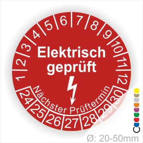 Für alle, die elektrische Geräte und Anlagen prüfen müssen: Diese Prüfplaketten sind genau das Richtige! Im Pack sind 1000 Stück auf Rolle - also genug Vorrat für Jahre. Durchmesser 20 mm, rot-weiß mit Aufdruck \Elektr. geprüft\ und Jahreskranz von 2026 bis 2031.