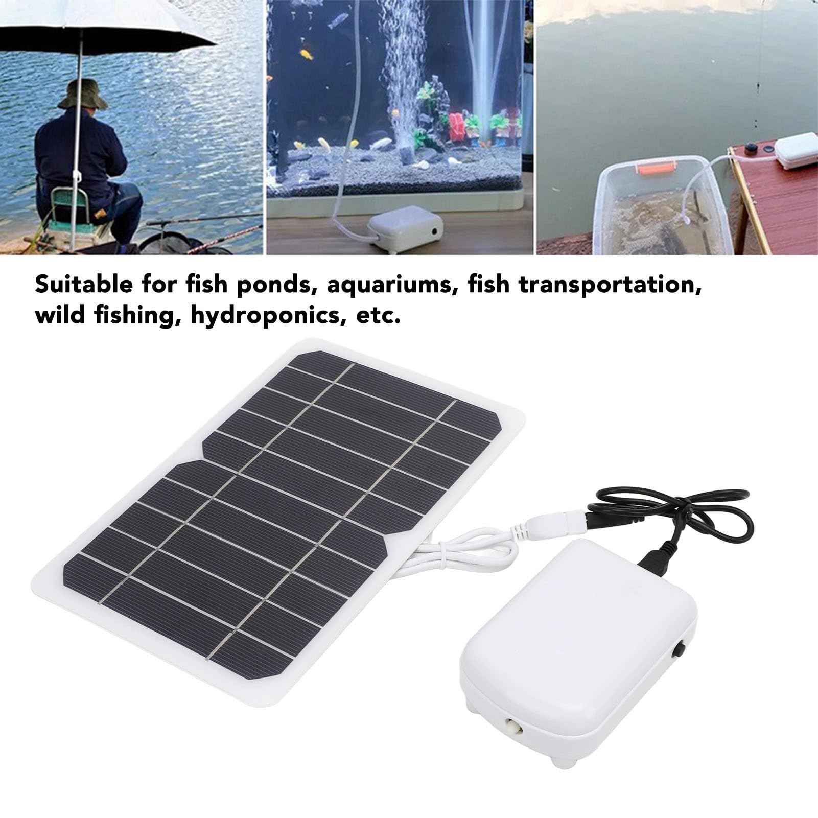 Perfekt für deinen Gartenteich! Dieser Solar-Belüfter arbeitet tagsüber mit Sonnenkraft und nachts mit dem starken 2200mAh Akku - rund um die Uhr Sauerstoff für deine Fische! Super für kleine und mittlere Teiche, egal ob Zierfische oder Angelteich. Komplett ohne Stromkosten - die Sonne macht's möglich! Einfach ins Sonnenlicht stellen, Schlauch und Belüfterkopf anschließen - fertig! Kein Werkzeug nötig, total easy. Die Pumpe ist klein und leicht (nur 451g), kannst du überall hin mitnehmen. Hält den Teich sauber, reduziert Algen und deine Fische bleiben gesund. Besonders im Sommer wichtig, wenn der Sauerstoff knapp wird! Aus ABS und Silikon, wetterfest und langlebig. Mit Überladungsschutz - der Akku wird nicht geschädigt. Im Lieferumfang sind sogar 3 Silikonschläuche, 2 Adapterrohre, 2 Belüfterköpfe und USB-Kabel dabei! Einfach das Solarpanel in die Sonne, und schon sprudelt's im Teich. Deine Fische werden's dir danken - sie sind aktiver und gesünder. Und du sparst dir Stromkosten! Einfach smart diese Solarlösung!