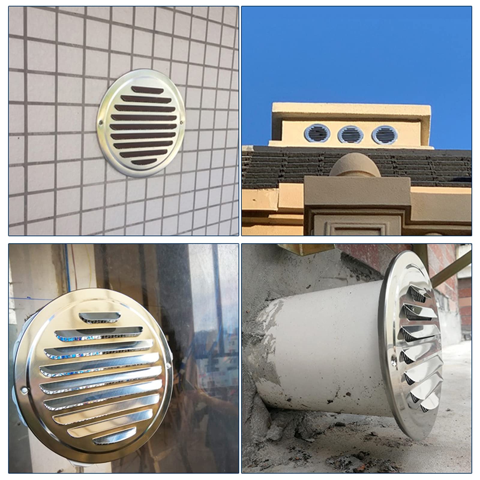 Frische Luft, keine Insekten! Dieses runde Lüftungsgitter aus Edelstahl 304 hält Regen und Ungeziefer draußen. Mit 45° Lamellen und feinem Insektenschutzgitter. Perfekt für Badezimmer, Küchen, Trockner oder Klimaanlagen. Einfache Montage mit seitlicher Schnalle - Handschuhe nicht vergessen! 50mm Durchmesser, robust und langlebig. Ersetzt alte, verrostete Gitter und sieht dabei noch gut aus. Einfach einbauen und durchatmen!