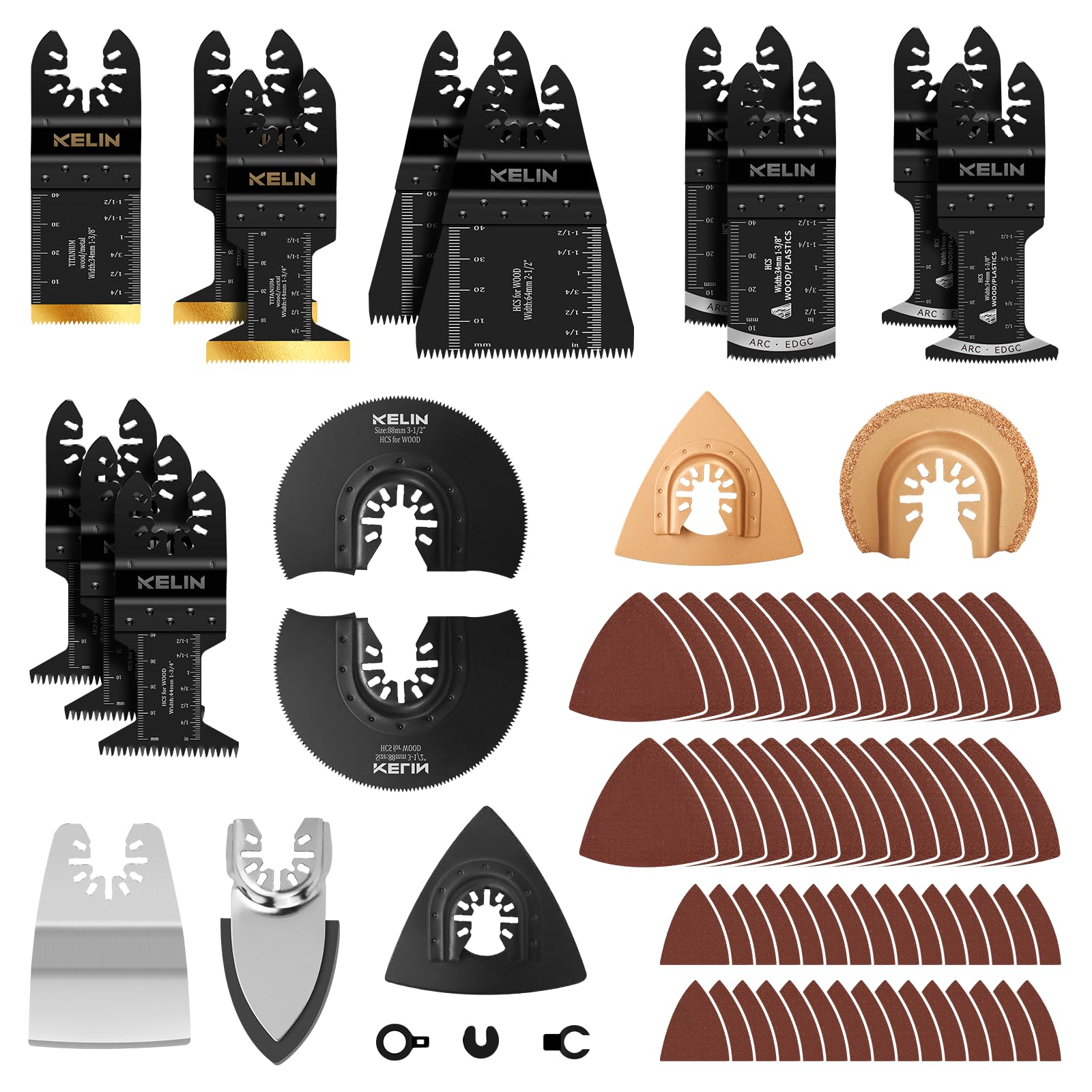 Boah, dieses KELIN-Sägeblätter-Set ist der absolute Hammer für jeden Heimwerker! Mit 16 verschiedenen Blättern in Titan-Beschichtung schneidest du damit einfach alles - Metall, Holz, sogar Nägel und Schrauben. Die Titan-Zähne sind drei Mal schneller als normale Bi-Metall-Blätter und halten ewig: Ein Titan-Blatt ersetzt ganze 10 herkömmliche Blätter! Im Set sind 13 Standard-Blätter (34mm/44mm) und 3 extrabreite 65mm-Blätter für größere Flächen wie Türzargen oder Blechplatten. Passt an alle gängigen Oszillierwerkzeuge von Bosch, Makita, Einhell - aber Achtung: Nicht für Starlock oder Fein geeignet! Das coole ist: Du kriegst 16 Blätter zum Preis von nur 6 Einzelblättern. Perfekt für die Garage oder Werkstatt, wenn du mal wieder ein Projekt hast. Egal ob du Rohre schneiden willst, alte Schrauben entfernen musst oder einfach nur was kürzen willst - mit diesen Blättern geht's easy. Und die halten wirklich, was sie versprechen!