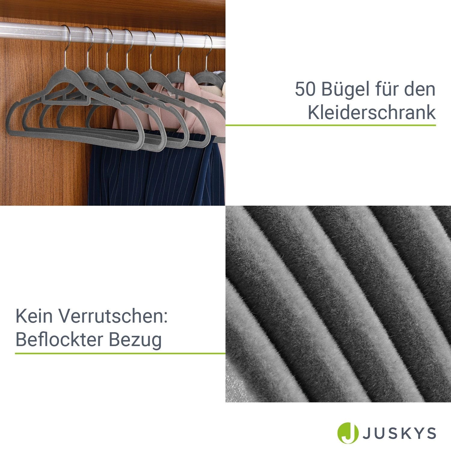 Endlich Ordnung im Schrank! Dieses 50er-Set Samt-Kleiderbügel in grau macht deinen Kleiderschrank zum Vorzeigeobjekt. Die rutschfeste Samtbeschichtung hält selbst empfindliche Kleidung sicher fest - keine Abdrücke mehr auf Schultern! Aus robustem Metall mit 360° drehbarem Haken für maximale Flexibilität. Die beiden Einkerbungen an den Seiten sind perfekt für Träger-Tops und Kleider. Super schlankes Design (44,5x5x23cm) spart jede Menge Platz - da passt viel mehr in deinen Schrank! Hält bis zu 10kg pro Bügel - also auch schwere Wintermäntel sind sicher aufgehoben. Ohne störende Querstange, dafür mit glatten Kanten die keine Kleidung beschädigen. Einfach aufhängen und dein Schrank sieht sofort ordentlicher aus. Perfekt für Hemden, Hosen, Röcke und Anzüge. Organisiere deine Kleidung wie ein Profi!