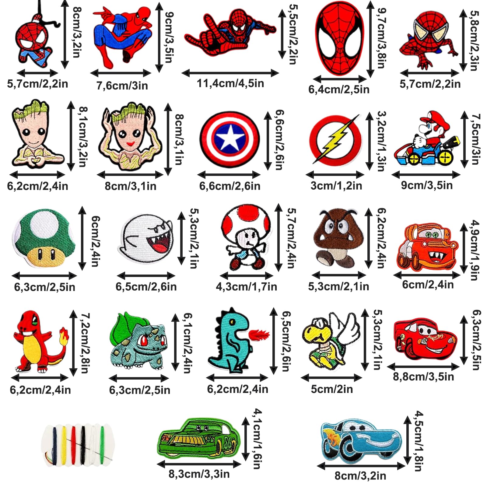 Kaputte Hosen? Langweilige T-Shirts? Mit diesen 22 bunten Bügelflicken machst du daraus wieder coole Lieblingsstücke! Total einfache Anwendung: Bügeleisen auf 160-180°C vorheizen, Flicken auf die Stelle legen und 30-60 Sekunden bügeln. Fertig! Aus weichem Vliesstoff mit Stickgarn - die Motive sind richtig süß und kindgerecht. Perfekt um Löcher zu flicken oder einfach nur um Klamotten zu verschönern. Für Jeans, Jacken, Rucksäcke, T-Shirts - was auch immer. Noch fester wird's wenn du die Ränder annähst. Mit der beiliegenden Nähtasche gleich loslegen! Ob für deine eigenen Kids oder als Geschenk - diese Flicken bringen Farbe in jeden Kleiderschrank. Einfach aussuchen, aufbügeln und freuen!