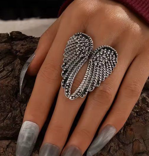 Ein Ring der Geschichten erzählt! Dieser wunderschöne Engelsflügel-Ring aus weißem Kupfer sieht aus wie echtes Silber, behält seine Farbe aber lange bei. Die filigran gravierten Engelsflügel sind so detailliert, dass man sie stundenlang bewundern kann. Das Beste: Er ist verstellbar! Passt also für fast jeden Finger - ob für Damen oder Herren. Im Y2K, Punk und Gothic-Stil ein absoluter Hingucker, aber auch zu normaler Alltagskleidung oder sogar Abendoutfits tragbar. Vielseitiger geht's kaum! Perfekt als Geschenk für Weihnachten, Geburtstage, Muttertag, Vatertag oder einfach so. Ob für Freund, Freundin, Ehemann, Ehefrau oder Familienmitglied - dieser Ring kommt immer gut an. Die Qualität spürt man sofort - robust verarbeitet aber dennoch zart und elegant. Ein Accessoire das auffällt und bleibenden Eindruck hinterlässt!