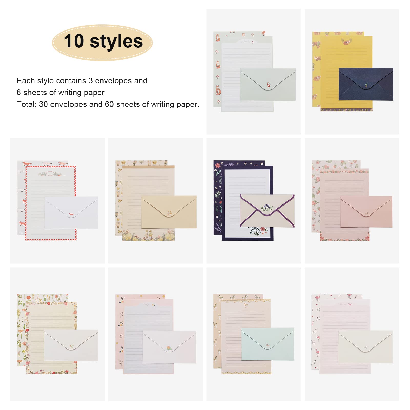 • 90-teiliges Briefpapier Set Mit Umschlägen - 10 Blumenmotive Für Persönliche Briefe