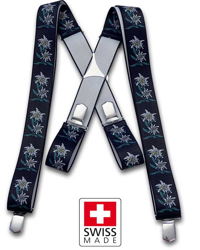 Harrys-Collection Hosenträger Mit Edelweiss Motiv - Knopfloch 35mm Breite