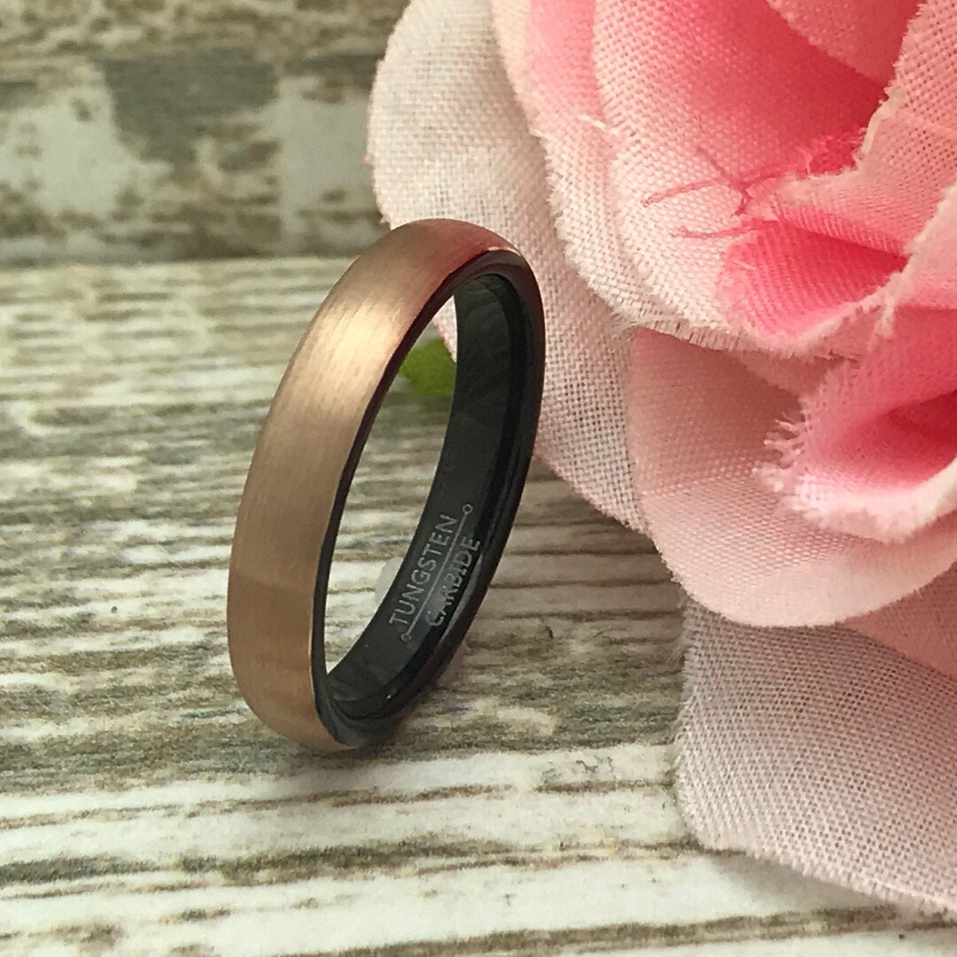 TUNGSTORY Wolfram Ring 4mm Roségold - Facetten Rhombus Eheringe Damen Herren