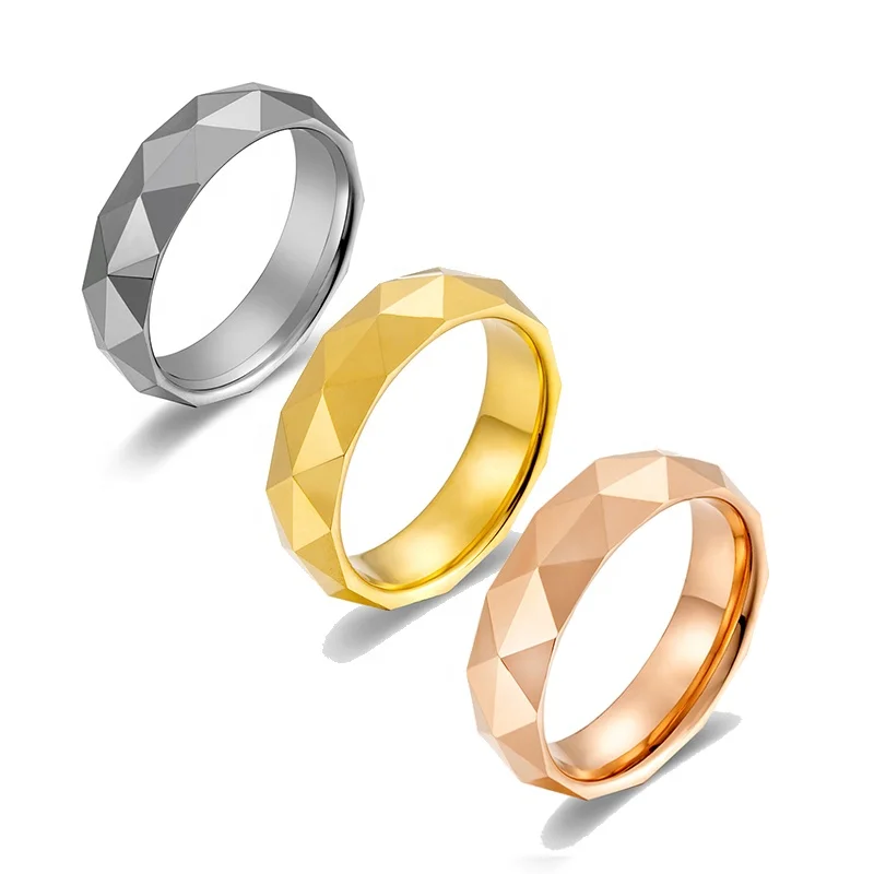 • TUNGSTORY Wolfram Ring 4mm Roségold - Facetten Rhombus Eheringe Damen Herren