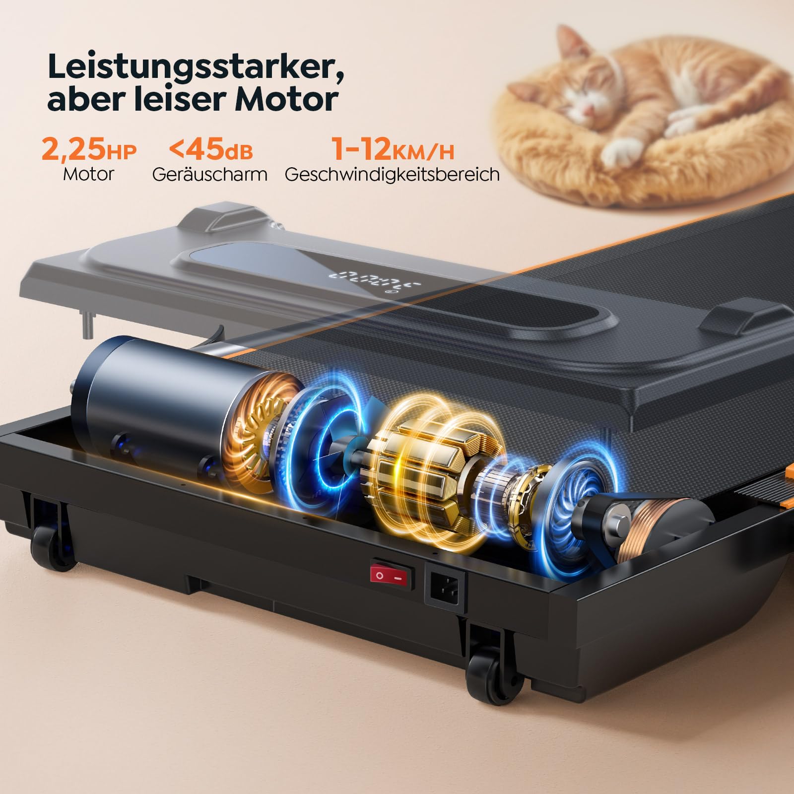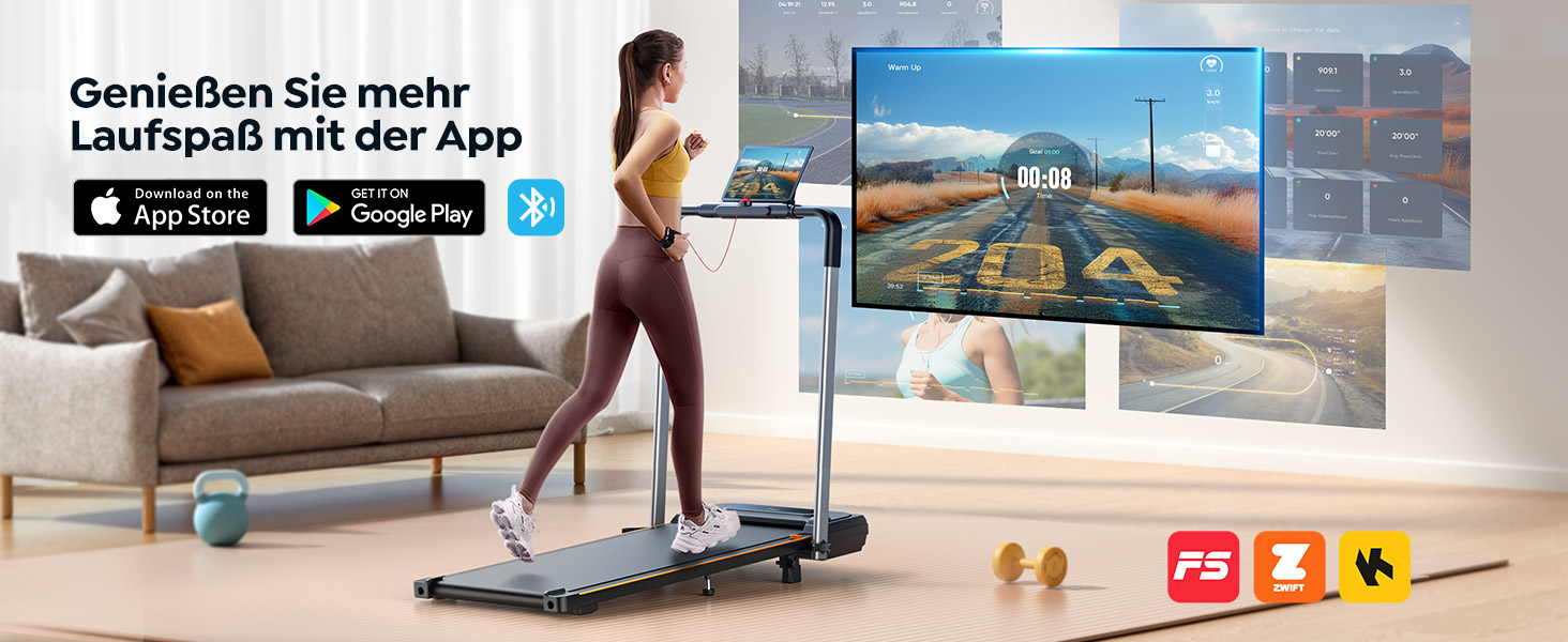 Endlich fit werden ohne Fitness-Studio! Dieses klappbare Laufband passt perfekt in jede Wohnung und macht Training super einfach. Mit 1-12 km/h Geschwindigkeit und 7% manueller Steigung ist für jeden Fitness-Level was dabei.\\n\\nOb gemütliches Walking unter dem Schreibtisch oder intensives Jogging mit Bergauf-Effekt - hier verbrennst du garantiert Kalorien! Die doppelte Stoßdämpfung schont deine Gelenke.\\n\\nSuper praktisch: Die magnetische Fernbedienung und App-Steuerung geben dir volle Kontrolle. Das LED-Display zeigt dir alle wichtigen Daten, und die Tablet-Halterung macht Training unterhaltsam.\\n\\nNur 13cm hoch - passt easy unter jeden Schreibtisch (mind. 15cm Höhe benötigt). Mit Transportrollen einfach zu bewegen und platzsparend zu verstauen.\\n\\nKeine Montage nötig - einfach auspacken, Strom anschließen und loslaufen! Mit 12 Monaten Garantie und gutem Kundenservice. Perfekt für Berufstätige, Eltern oder alle mit wenig Zeit!