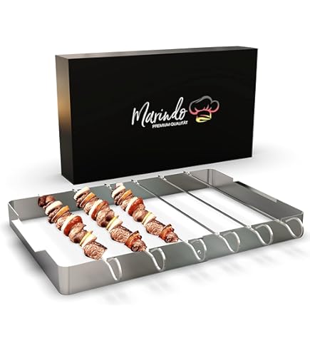 Boah, dieser Airfryer Spießhalter ist ja mal der Hammer! Aus echtem Edelstahl und mit Platz für ganze 24 Spieße - perfekt für Grillabende oder wenn mal Besuch kommt. Das coole Design mit 45-Grad-Schrägstellung sorgt dafür, dass die Heißluft richtig gut zirkuliert und alles gleichmäßig durchgart. Ob Würstchen, Fleisch, Fisch oder Gemüse - alles wird perfekt knusprig! Passt in die meisten Airfryer, Backöfen und sogar Dampfgarer. Mit den Maßen 16,5x9,5 cm ist er super platzsparend und kann sogar gestapelt werden. Hält Temperaturen bis 260°C aus und ist spülmaschinenfest - easy zu reinigen! Einfach die Spieße rein, Gerät an und ab geht's! Perfekt für alle, die gerne abwechslungsreich kochen und keine Lust auf ständiges Wenden haben. Egal ob für den täglichen Gebrauch oder besondere Anlässe - dieses Teil macht einfach Spaß!