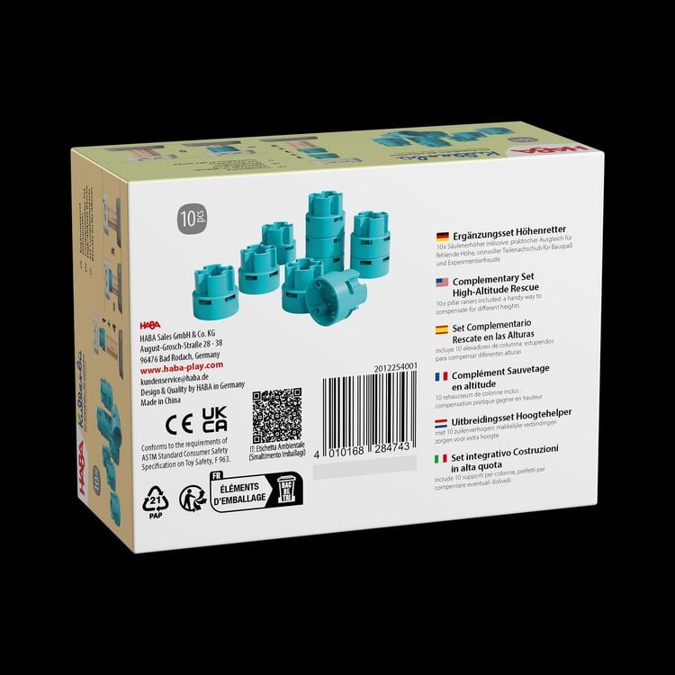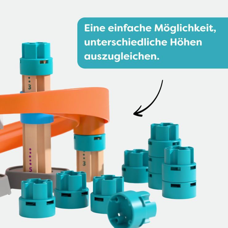 Baue deine Kullerbü Bahn in die Höhe! Mit diesen 10 Säulenerhöhern von HABA wird deine Kugelbahn zum echten Abenteuer. Einfach auf jede Kullerbü Säule stecken und mit einem Klick ist die Erhöhung fertig. Du kannst mehrere Erhöher übereinander stecken, um noch größere Höhenunterschiede zu überwinden. Das intuitive Stecksystem ist perfekt für kleine Kinderhände ab 3 Jahren. Beim Bauen und Experimentieren fördern Kinder spielerisch ihre motorischen Fähigkeiten und ihr räumliches Denken. Aus robusten Materialien gefertigt, garantieren die Erhöher lange Spiel-Freude. HABA Qualität made in Germany - darauf kannst du dich verlassen. Perfekt als Ergänzung zu bestehenden Kullerbü Sets oder als Geschenk für kleine Baumeister. Lass der Kreativität freien Lauf und baue die verrücktesten Bahn-Konstruktionen! Einfach stecken, klicken und die Kugeln beobachten, wie sie ihre neue Höhenroute nehmen.
