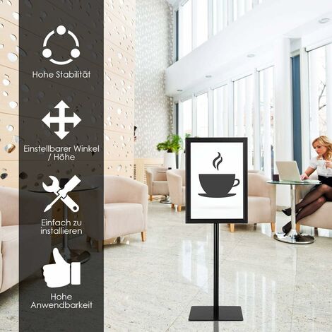 Ob für Messen, im Laden oder im Büro - dieser Infoständer von GOPLUS ist ein echter Allrounder! Aus robustem Aluminium und Edelstahl gefertigt, hält er ewig und rostet nicht. Die Höhe ist von 83-130cm (A4) bzw. 89,5-134cm (A3) verstellbar, also perfekt anpassbar für jeden Standort. Der Ständer lässt sich um 360° drehen, damit deine Plakate von überall gut sichtbar sind. Die stabile Bodenplatte mit 28cm Durchmesser sorgt für sicheren Stand, auch bei vollem Betrieb. Montage ist total einfach - im Handumdrehen aufgebaut. Das silberne Design sieht modern und professionell aus ohne aufdringlich zu wirken. Perfekt für Flyer, Werbeplakate oder Informationen in Hotel, Kino, Ausstellung - drinnen und draußen einsetzbar. Ein echter Klassiker, der nie aus der Mode kommt!