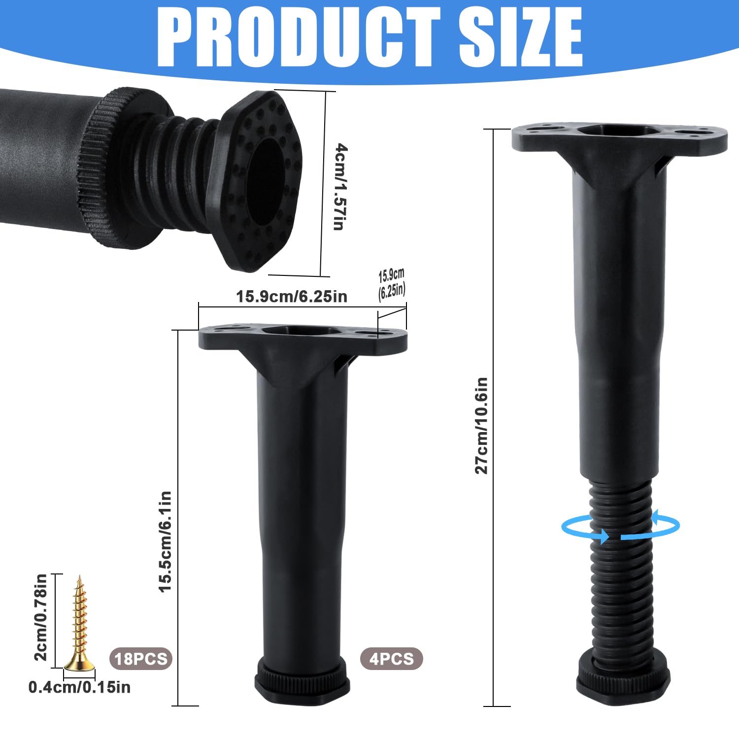 Wackelige Möbel? Diese 4 verstellbaren Füße sind die Lösung! Einfach die Höhe zwischen 27 und 40 mm einstellen und schon steht dein Schrank, Bett oder Tisch perfekt gerade. Mit 3M-Kleber für einfache Montage ohne Bohren - oder mit Schrauben für extra Halt. Die EVA-Antirutsch-Pads schützen deine Böden vor Kratzern und reduzieren Geräusche. Aus robustem ABS-Kunststoff und Kohlenstoffstahl - hält auch schweren Möbeln stand. Silberfarben passt zu fast allem. Einfach anbringen und endlich stabile Möbel genießen! Perfekt für unebene Böden.
