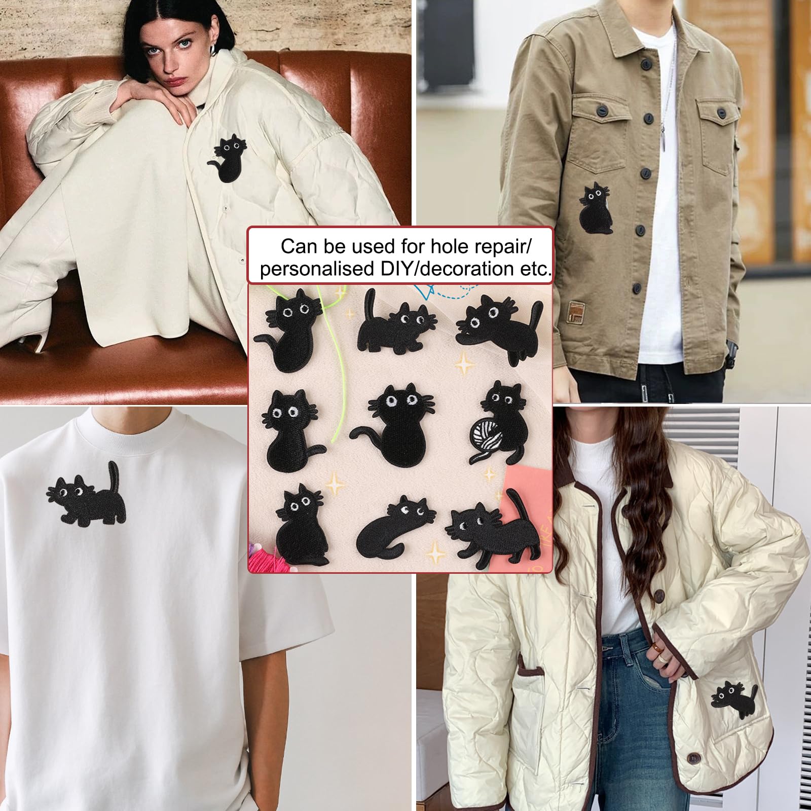• Stickerei Aufnäher Schwarze Katze - 10 Stück Bügelpatches Für Jeans & Jacken