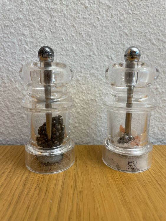 Frische Gewürze auf Knopfdruck! Dieses elegante 2er-Set aus Salzmühle und Pfeffermühle bringt professionelles Aroma in deine Küche. Aus hochwertigem Edelstahl und Glas gefertigt, sehen die Mühlen nicht nur gut aus, sondern sind auch super langlebig.\\n\\nDas verstellbare Keramik-Mahlwerk lässt dich die Mahlstärke ganz einfach einstellen - von fein bis grob, je nach Geschmack. Perfekt für Meersalz, Pfefferkörner, Chilischoten, Kreuzkümmel und viele andere Gewürze.\\n\\nMit 180ml Fassungsvermögen musst du nicht ständig nachfüllen. Der luftdichte Edelstahl-Deckel hält Feuchtigkeit fern und bewahrt das Aroma deiner Gewürze.\\n\\nReinigung? Ganz easy! Das Glas ist spülmaschinenfest und der Mahlkopf lässt sich einfach mit Wasser abspülen.\\n\\nMaße: 19,3x6,5x6,4cm - kompakt und handlich. Das perfekte Geschenk für Hobbyköche oder um deine eigene Küche aufzuwerten. Frisch gemahlene Gewürze machen jeden Unterschied - probier's aus!