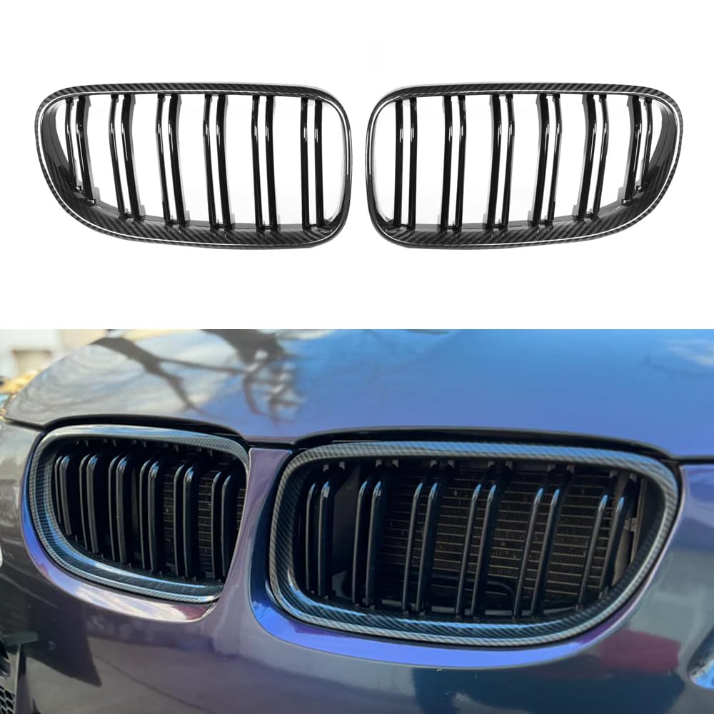 Verpasse deinem BMW E90/E91 (2009-2011) den Racing-Look! Dieser Carbon Fiber Kühlergrill in Nierenform macht deinen 3er sofort aggressiver. Passt perfekt für 325i, 328i, 335i 4-Türer. Aus robustem ABS-Material, kratzfest und UV-beständig. Einfacher Einbau - originalgetreue Passform, keine Modifikationen nötig. Schützt den Kühler vor Steinschlag und leitet effizient Luft für optimale Motorkühlung. Hält extremen Temperaturen stand. Maße: 33,5x18x5cm. Lieferung: 1 Paar (linke + rechte Seite). Wichtig: Bitte Fahrzeugmodell und Baujahr angeben! Professionelle Installation empfohlen. Kleine Veränderung, großer Effekt - mach deinen BMW unverwechselbar!