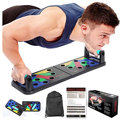 Liegestütze mal smart! Dieses innovative Liegestützbrett zählt automatisch deine Wiederholungen und misst die Trainingszeit. Das farbcodierte System trainiert gezielt verschiedene Muskelgruppen: Blau für Brust, Rot für Schultern, Grün für Trizeps, Gelb für Rücken. Die rutschfeste Unterseite und die weichen Silikongriffe sorgen für sicheren Halt und schützen deine Handgelenke. Aus robustem ABS-Material mit bis zu 300 kg Tragkraft - faltbar für platzsparende Aufbewahrung. Perfekt für effektives Home-Workout ohne teures Fitnessstudio. Mit dem intelligenten Display behältst du immer den Überblick über deine Fortschritte. Ob Muskelaufbau, Fettverbrennung oder allgemeine Fitness - dieses Board macht Liegestütze zum High-Tech-Erlebnis!