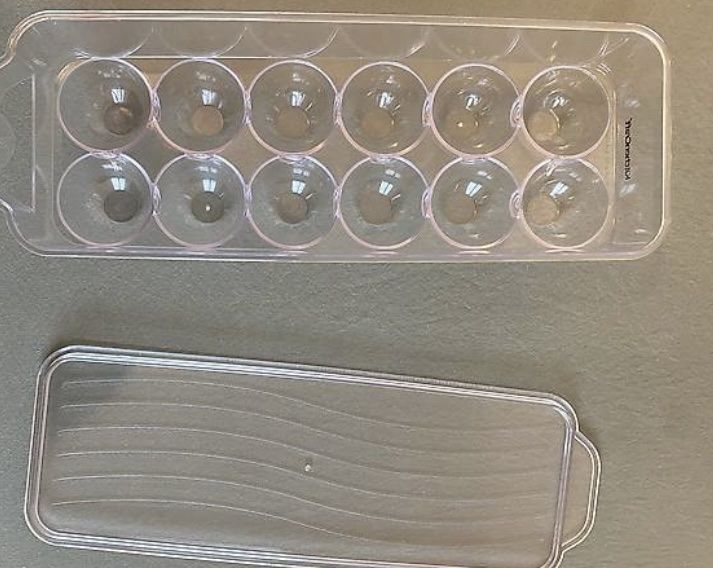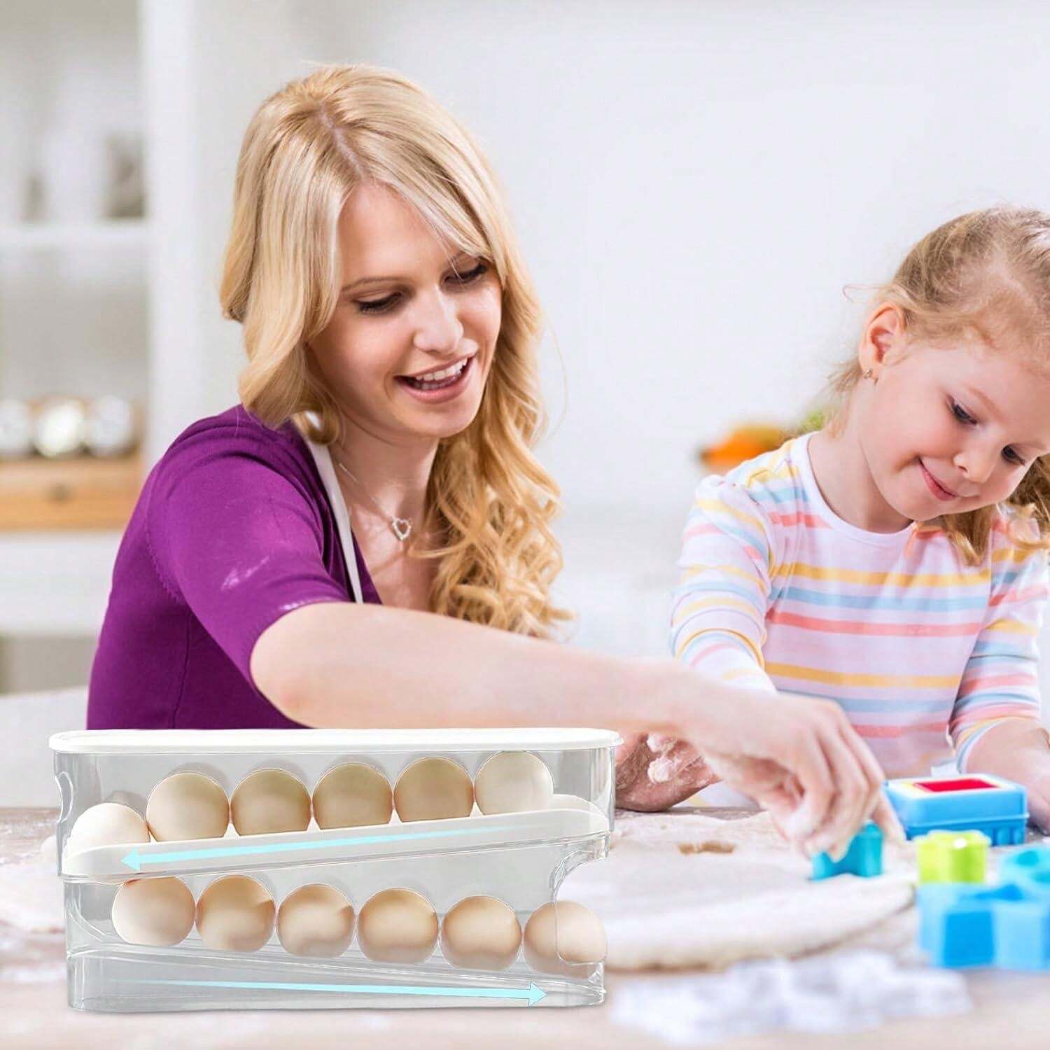 Aus transparentem Kunststoff, sodass du immer siehst, wie viele Eier noch da sind. Das rutschfeste Design verhindert, dass die Eier verrutschen und kaputt gehen.