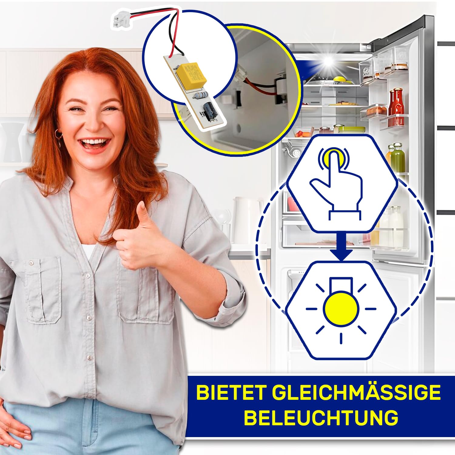 Wenn's im Kühlschrank dunkel bleibt - diese MONTERAL LED Leuchtplatte bringt wieder Licht ins Dunkel! Als Ersatz für die Originalteile 0064001827 und 49045786 passt sie perfekt für Candy, Haier, Hoover, Rosieres und Zerowatt Kühlschränke. Mit 130mm Länge, 15mm Breite und 7mm Höhe ist sie genau auf die meisten Modelle abgestimmt. Die Leiste hat 3 SMD LEDs und liefert super helles, kaltweißes Licht mit 120 Lumen bei 8900K - da siehst du deine Lebensmittel wieder perfekt! Betrieb mit 12V Gleichstrom und nur 1,5W Verbrauch - richtig energiesparend. Wichtig: Vor dem Einbau unbedingt den Stecker ziehen und das Teil nicht mit bloßen Händen anfassen. Hält Temperaturen von -25°C bis +10°C stand und kommt mit satten 10 Jahren Garantie! Einfach den alten Defekt ausbauen, diese Leiste anschließen und schon leuchtet dein Kühlschrank wieder wie neu - ohne teuren Techniker!